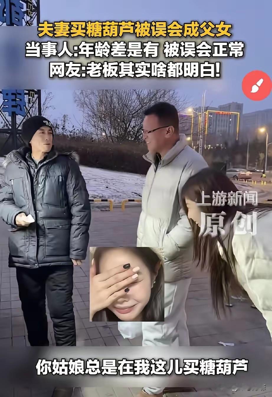 笑不活了!黑龙江,一对夫妻吃完晚饭后到外面散步,丈夫本打算带妻子买根糖葫芦吃,没成想,走到摊主前被误认为是父女,摊主还热情招呼男子:给自家姑娘多带几根。一旁的妻子笑得嘴都合不上了。 卖糖葫芦的摊主,是个热心的东北大叔,因为妻子之前经常一个人来买糖葫芦,大叔早就记得她了。 当晚大叔看到夫妻俩一前一后走过来,再加上路灯光线有点暗,丈夫面容看起来沉稳,显成熟,妻子看着格外年轻,便下意识把两人的关系认成了父女。 他热情招呼丈夫:给自家姑娘多带几根,还念叨着:她常来,就爱吃酸的。 这话一出,妻子当场笑到直不起腰,丈夫也愣了一下,但没有半点尴尬,反而情商拉满地顺势接话:行,得多买几根,我平时老出差,没人陪她来,得给她囤够了,边说还认真挑了好几串不同口味的。 大叔看着两人的互动,这才反应过来闹了误会,拍着大腿连连道歉,还主动多送了一串最大的糖葫芦当补偿,一个劲说:祝你们小两口甜甜蜜蜜。 夫妻俩笑着收下,也跟大叔道了谢,拿着糖葫芦继续散步了。 有网友表示,这大叔的热心肠,比糖葫芦还暖,也有网友调侃丈夫,这波喜提闺女,赚大了。 还有网友羡慕夫妻俩的感情,说换别人可能觉得别扭,他俩却能一起笑,感情是真的好。 原本平平淡淡的一个晚上,因为这场有趣的小误会,变得特别有意思,又好笑又治愈。 真正舒服的感情,就是能一起笑对这些小事,不较真,反而觉得好玩,这才是过日子该有的样子。 这件事很小,却是生活中的小确幸,以后回忆起来也会觉得开心,让人心里暖暖的。