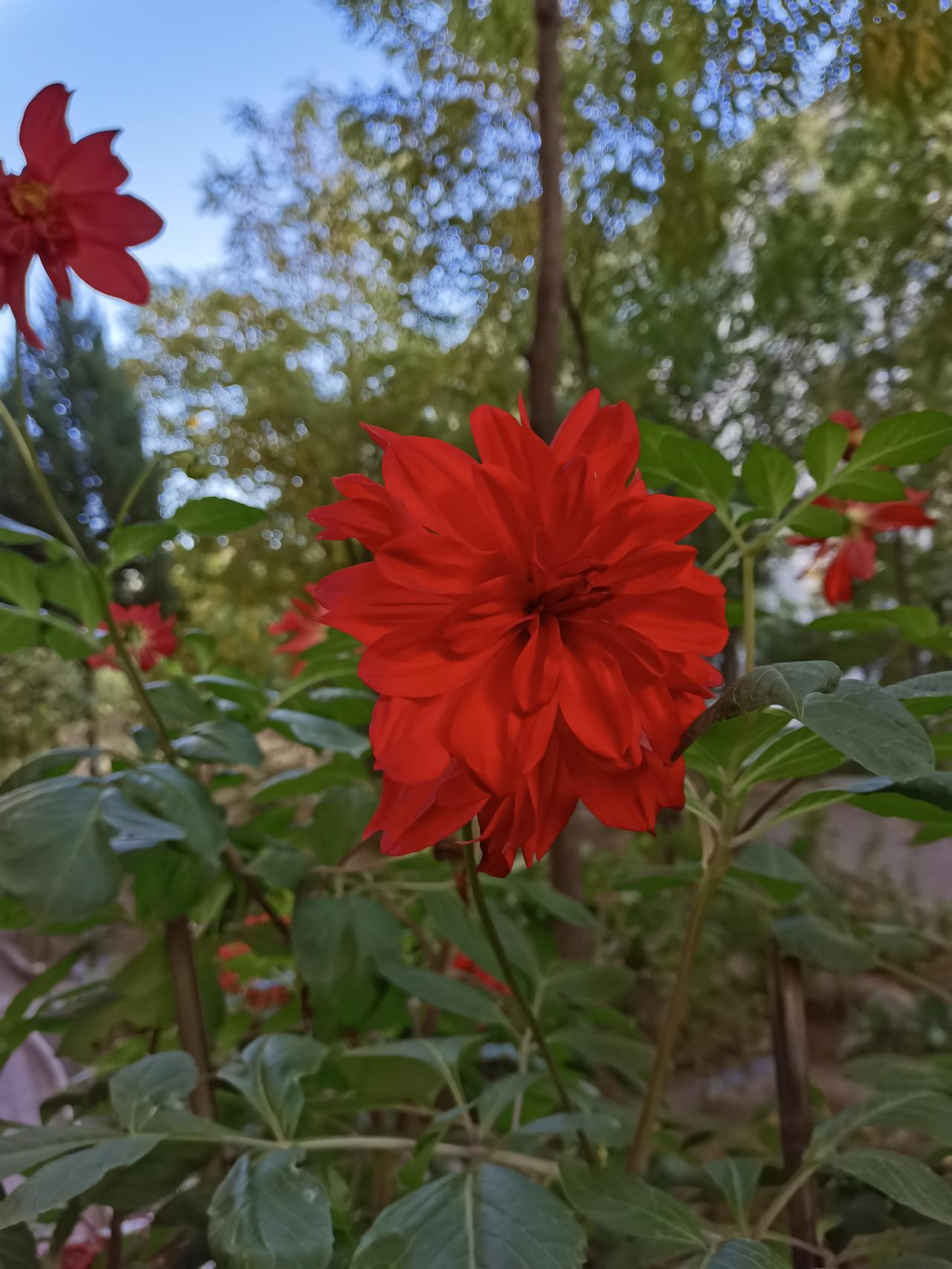 红枫的颜色与蓝天白云搭配,画面更加赏心悦目