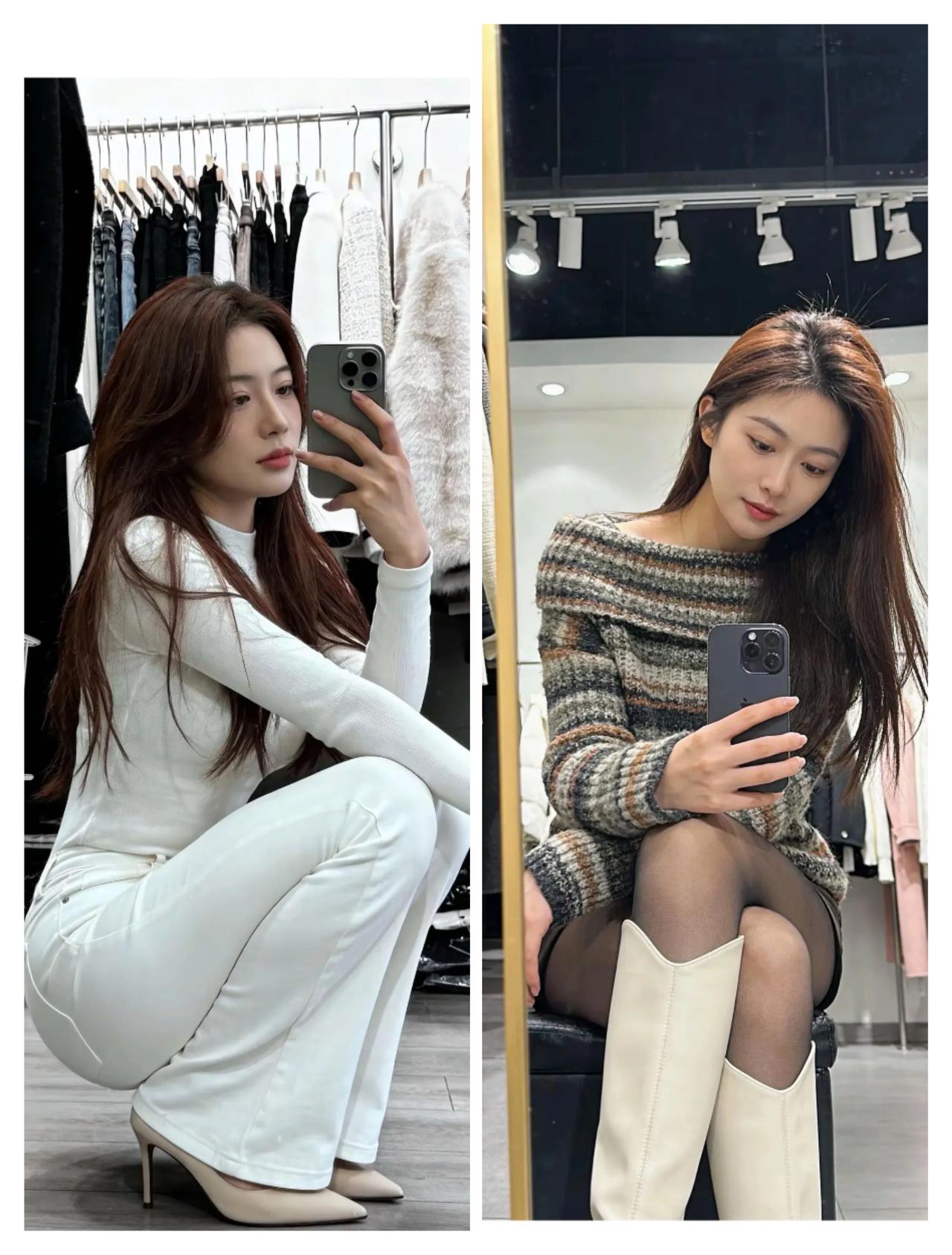 秋冬穿搭指南,白色套装与条纹毛衣的完美搭配,尽显优雅气质!👗👠💄