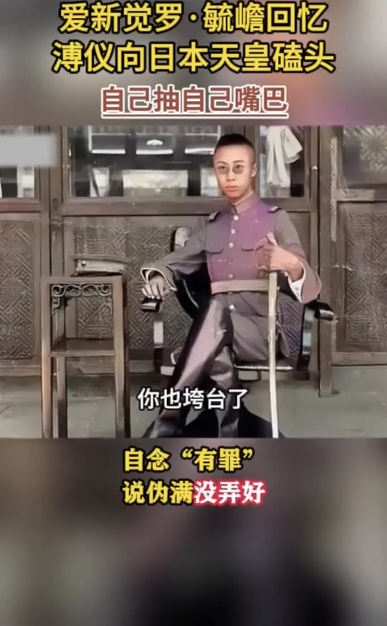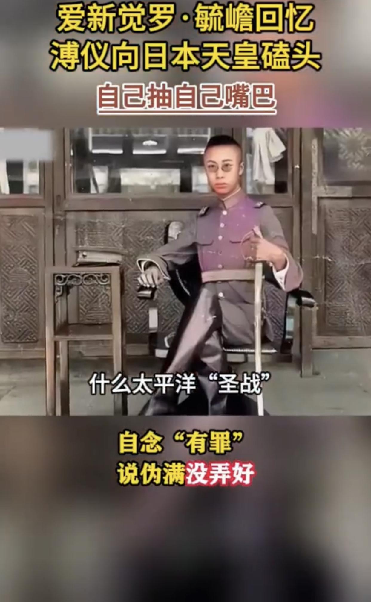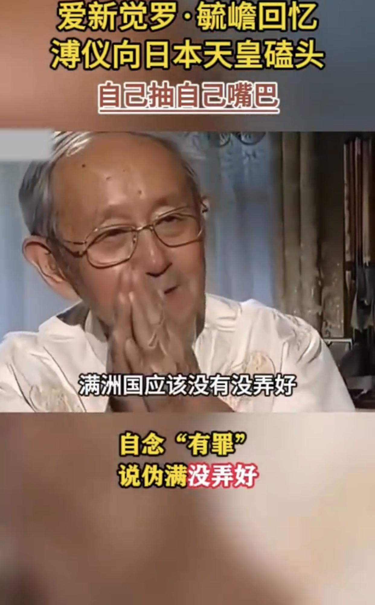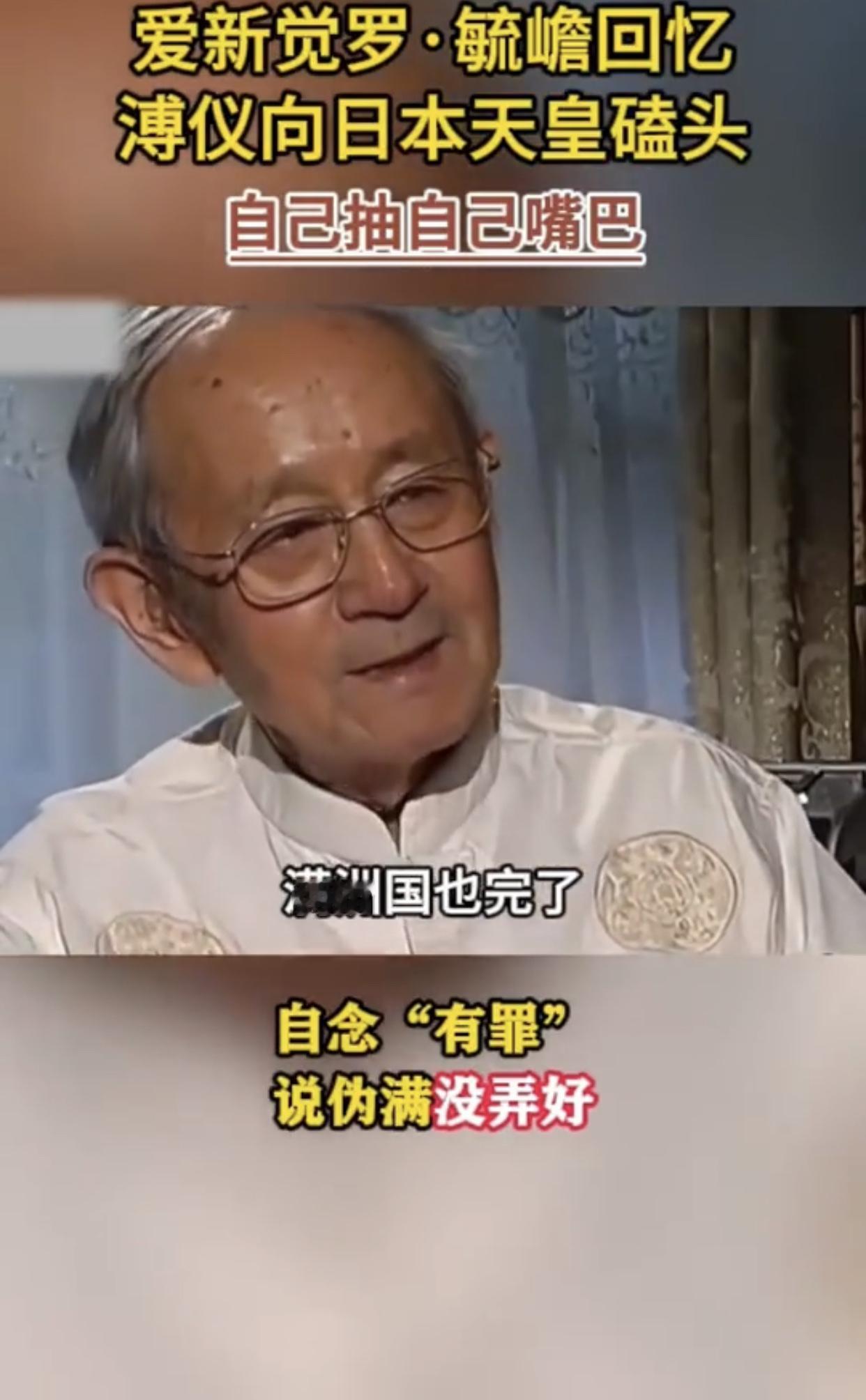 爱新觉罗·毓嶦对二战时日本人扶持的伪满洲国溥仪的回忆:二战日本天皇宣布无条件投降那天,溥仪、溥杰两人都哭了,两人相对一看,这回完了,这回日本也完了,满洲国也完了,这该怎么办啊,然后溥仪马上站起来,冲东门的方向跪下,给日本天皇磕头,还自己打自己嘴巴子,说我这个满洲国应该没有弄好,没能帮助你打这个太平洋“圣战”,你也垮台了,我说这是我的罪孽。