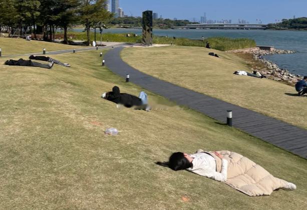 吃完中午饭没什么行情,想着来楼下公园溜溜食,发现草坪到处睡了人,咱就是说,现在的年轻人都挺接地气啊,天当被,地当铺