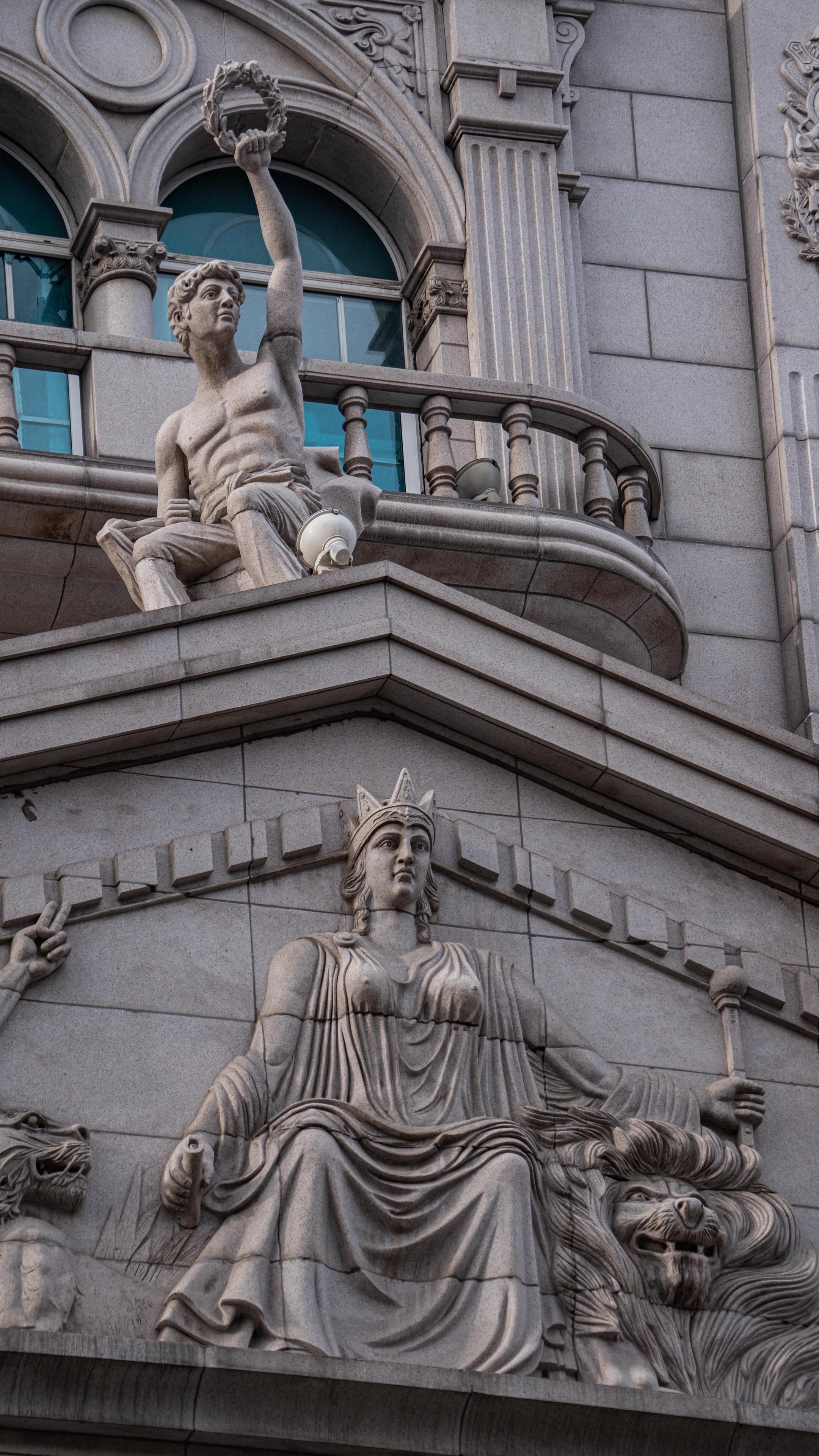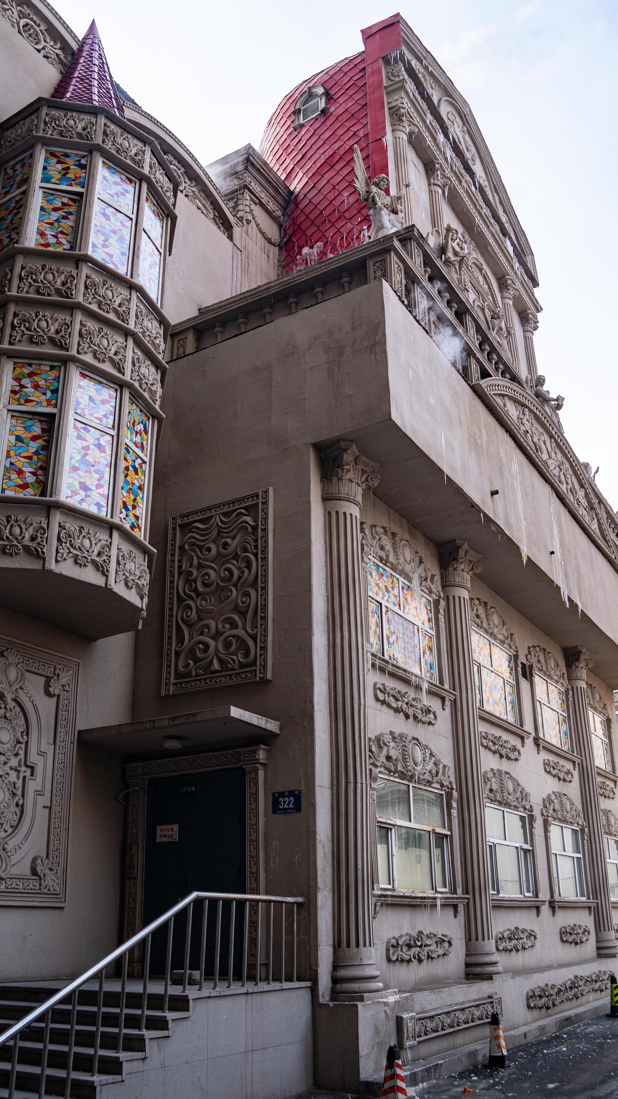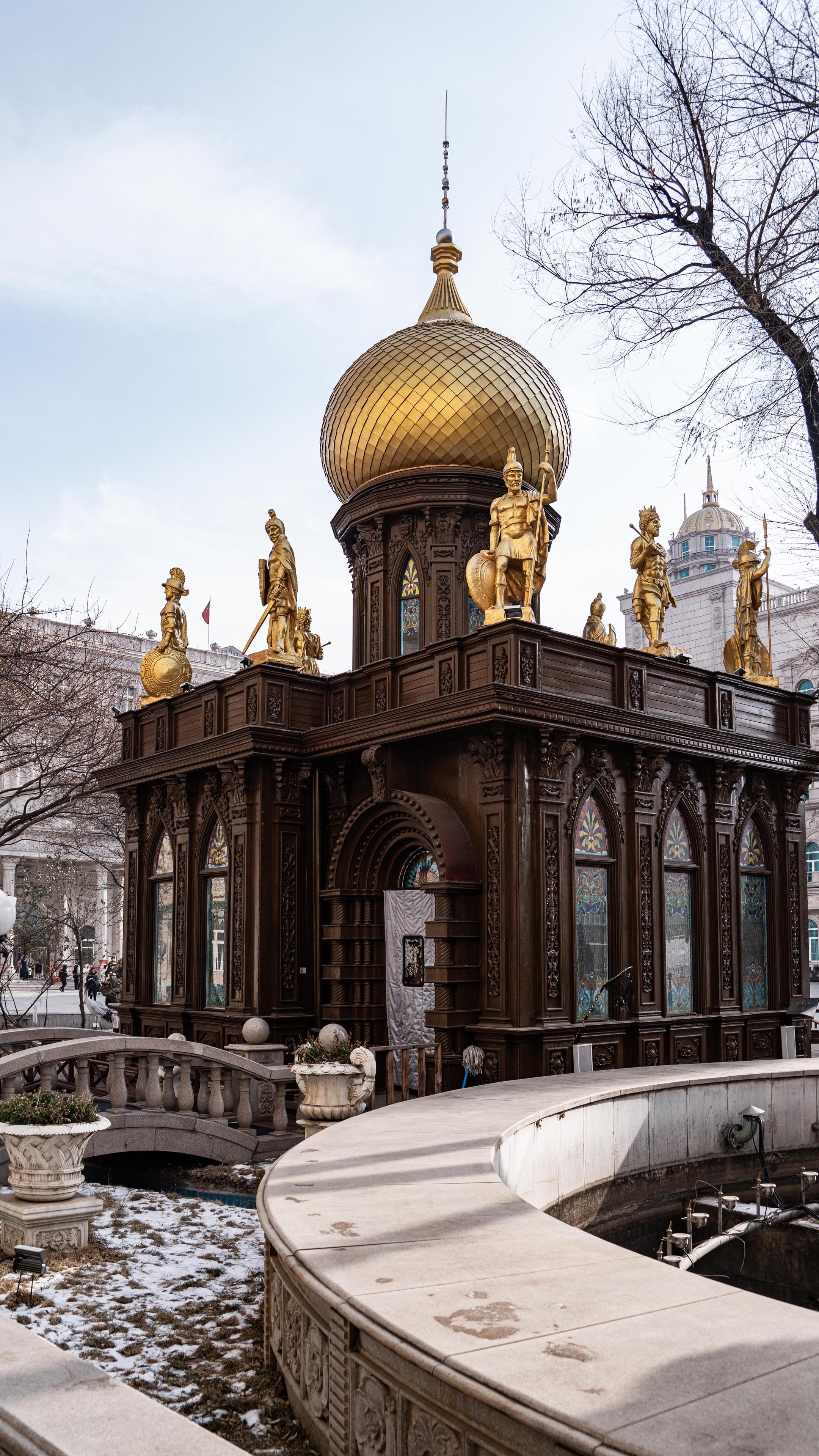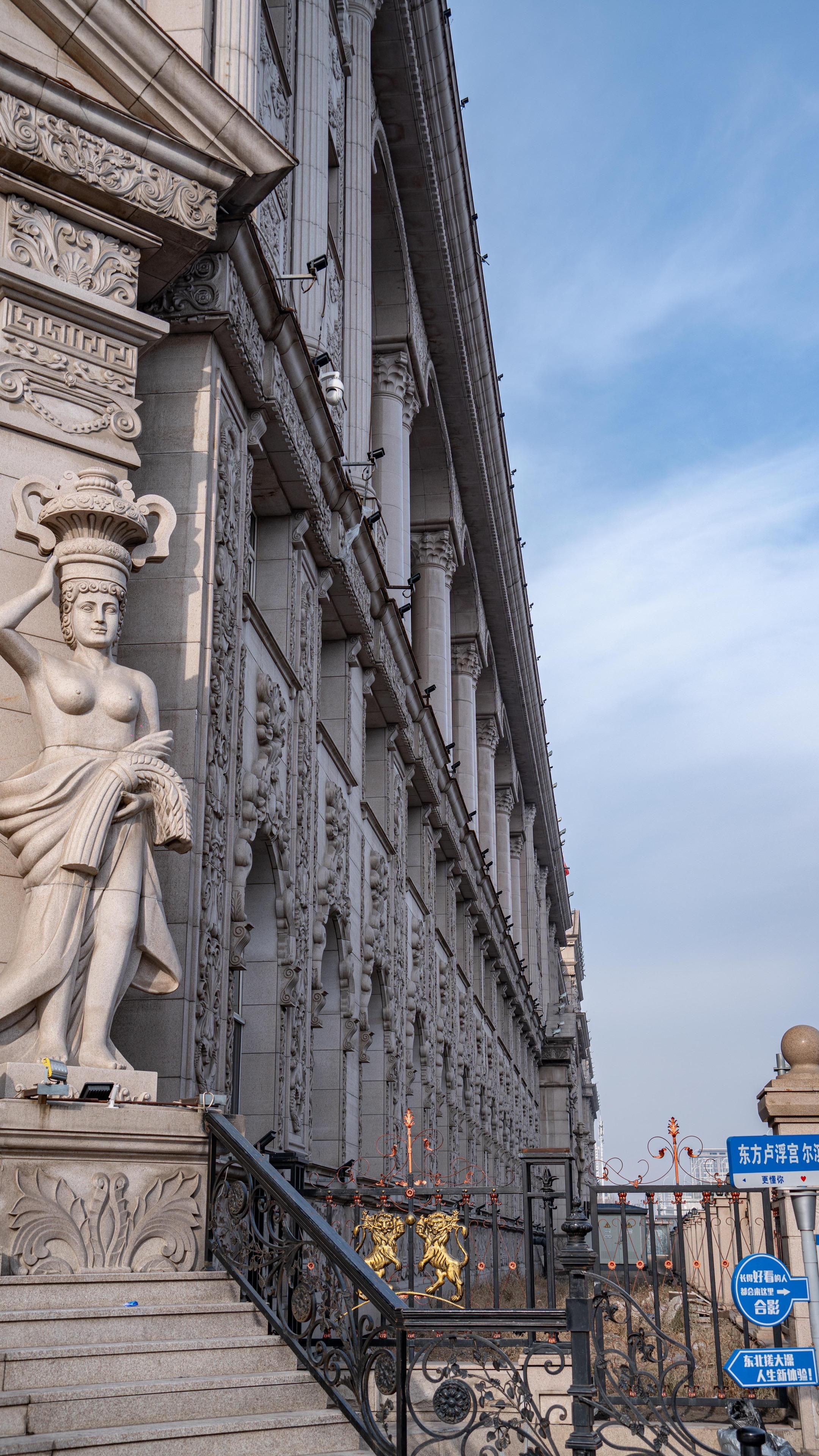博物馆的建筑为恢弘的欧式古典风格,穹顶高耸,立柱与浮雕遍布,很难想象这里曾经是哈药六厂的旧址。