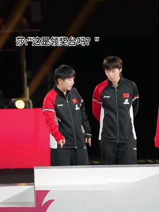 知道自己是冠军,但是不知道自己应该站在哪里 一个小小的领奖台,把国乒一群大佬们都干懵圈儿了。 你以为站上去的只是世界第一的排名? 不,那上面刻着队伍的传承、江湖的规矩,还有这群年轻人心里那点可爱的较真儿。 莎莎那犹豫的小表情,像极了考试满分却不敢第一个领奖状的学生。 她不是谦逊,是太清楚肩上沉甸甸的分量。 这场景莫名熟悉,去年混团世界杯,蒯曼和林诗栋不也这样,领奖时恨不得把自己缩进背景板里,结果被师姐陈幸同一把“拎”回中心位。 年轻队员的这份小心翼翼,背后是他们对前辈的尊重,更是对身上国旗的敬畏。 但你看王楚钦就不一样。 表面上是“按位置站,挺好”的大大咧咧,可国家队摄影师老李爆过料,这位爷每回颁奖前都跟侦探似的,蹲地上研究站位标记点,恨不得拿粉笔描个线。 网友戏称这是“莎头组合”在修炼《C位布局学》,表面奥运冲金,背地里琢磨怎么站得不偏不倚。 这份“心机”里,藏着他作为核心队员的责任感,得稳住阵脚,得让团队看起来像个整体。 李隼教练曾说莎莎是个“小刺头”,有点脾气,为此没少被罚跑万米。 可正是这股不服输的棱角,让她从5岁握拍到15岁进国家队,再到现在稳坐世界第一,每一拍都结结实实。 她和教练邱贻可的情谊,日常相处亲如父女,但训练场上,汗水砸在地板上的声音比任何话语都响亮。 我们总惊叹于领奖台上的光芒,却容易忽略那一万米跑道的长度,和训练馆里数千个重复击球的午后。 国乒大家庭的温暖也在这“站位学问”里流淌。 大合照时,大家会不约而同地把莎莎让到最显眼的位置,这份默契远超比赛输赢。 而莎莎自己,赛后默默抚平国旗褶皱的细节,又被粉丝称为“小太阳”的温暖。 这种温暖与严格并行不悖,对规则较真,对队友暖心,对国旗敬畏。 所以啊,这高高的领奖台哪是莎莎一个人的坎儿? 它分明是每个国乒队员成长的缩影。 站在哪里,从来不只是地理问题,而是心态的成人礼。 当他们终于稳稳站定,坦然接受所有的目光与掌声时,我们看到的,是一代代国乒人用汗水浇灌出的自信与传承。 那份懵圈儿的可爱,终将化为山巅之上的从容。