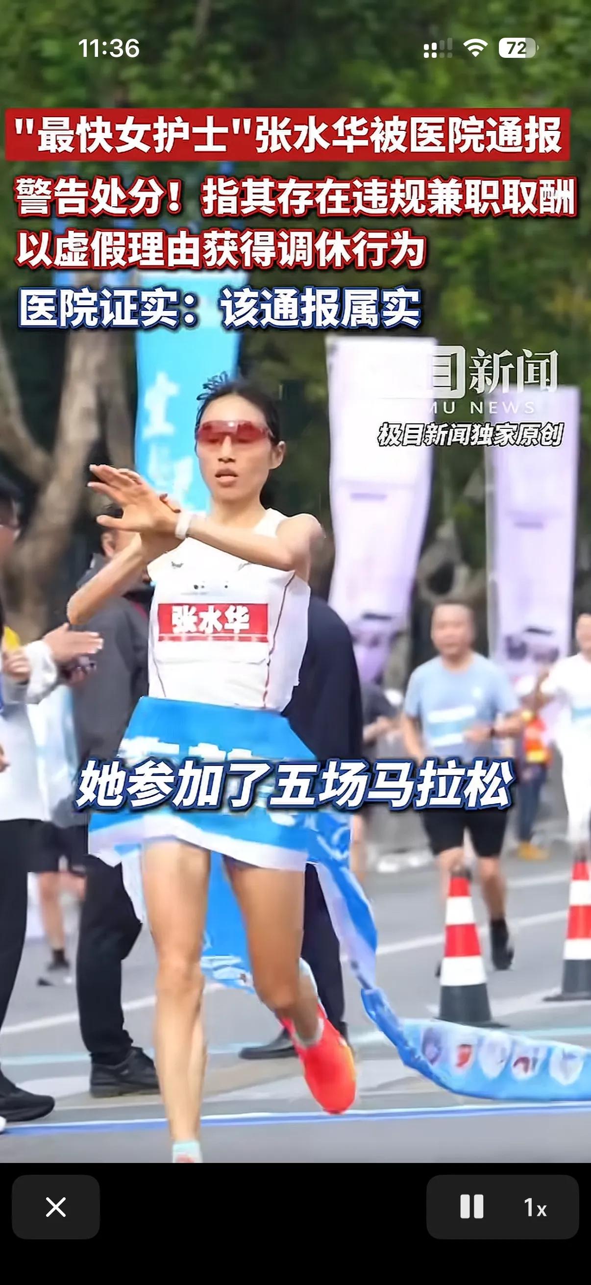 马拉松女护士被医院警告处分! 大家还记得那位跑完马拉松后获奖被记者采访时候,哭着对记者说,希望医院能支持自己,多给自己调休的那位女护士么? 就在不久前她还参加了马拉松,又是周末! 要知道这位女护士可是在医院上班的,大家都好奇怎么她每次都可以周末休息有时间出来跑马拉松呢! 现在她所在职的医院出来通告了! 给出两个处罚! 第一就是存在违规兼职取酬! 第二就是以虚假理由获得调休! 现在医院已经证明这是事实! 只能说世间,想要鱼肉和熊掌都兼得那是不可能的了!