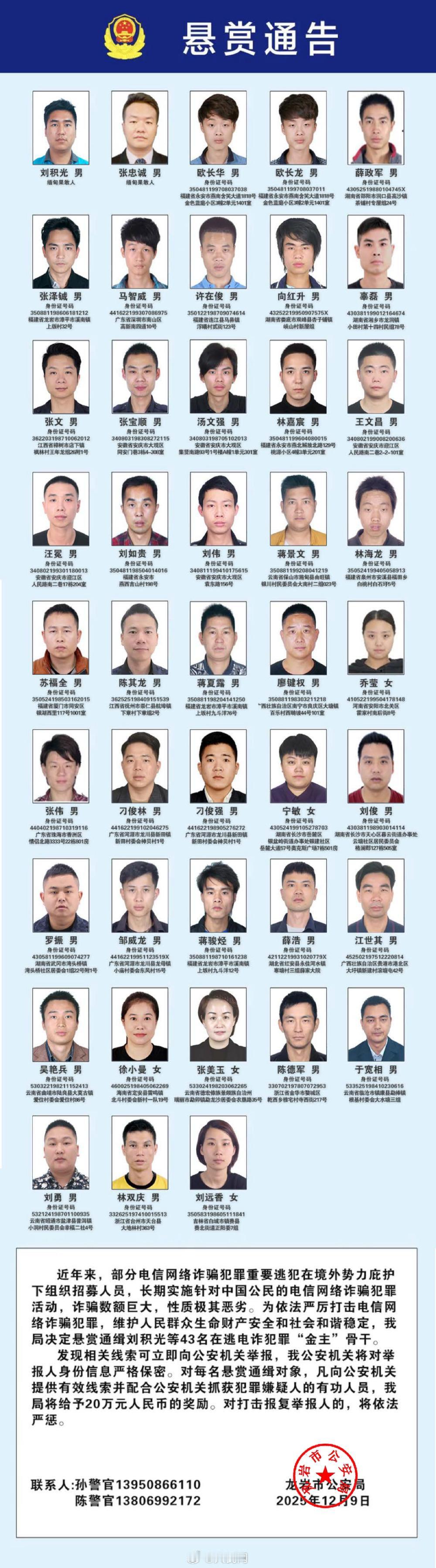 全国9个省区的公安发布通缉令通缉100名境外电诈骨干分子,看看有认识的吗?看了下户籍信息,福建人最多,电诈大boss陈志就是福建人,这一点不奇怪。其次云南、浙江、河南、湖北、江苏、江西、广东等地方的人也不少。这些人有些可能主动过去捞偏门的,有些是被骗过去,自甘堕落的。他们骗了多少同胞,造成了多少损失,如今成为过街老鼠,实属罪有应得。跨国电诈集团