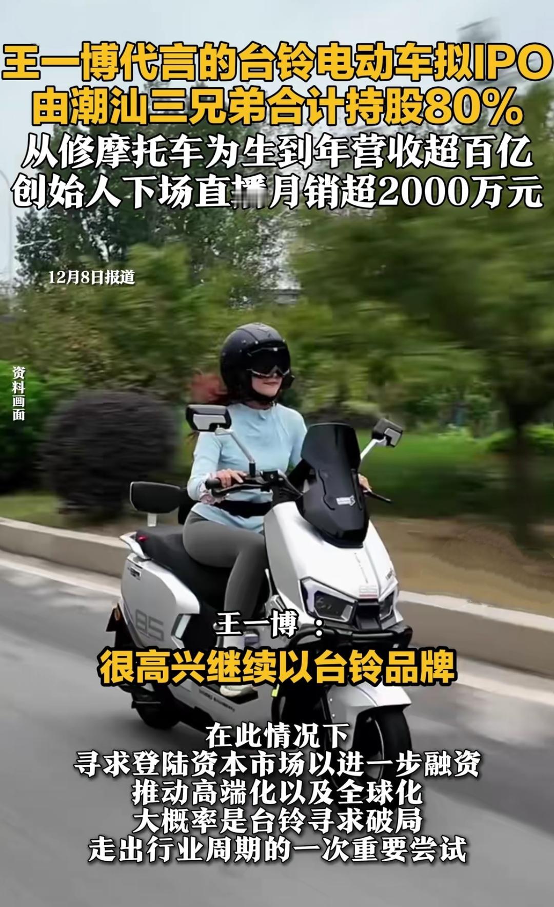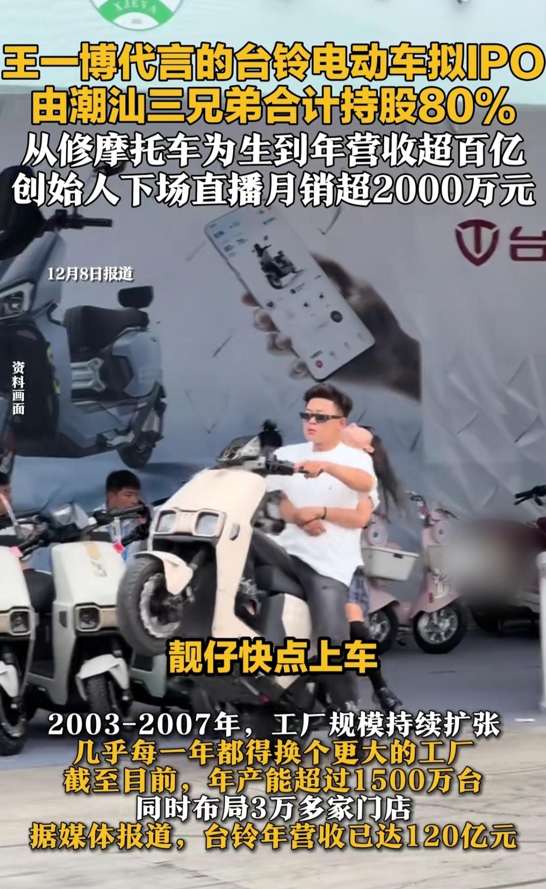 身价百亿的老板,竟然还要亲自直播带货?这事儿听起来是不是有点离谱?更没想到的是,这背后的起家故事,居然和咱们路边最不起眼的修车摊有关。 谁能想到,如今大街小巷跑的台铃电动车,当年是靠三个潮汕兄弟在路边修摩托车一点点攒出来的?这不仅仅是做生意,这简直就是一部活生生的“草根奋斗史”。从满手油污到敲钟上市,他们靠的不是运气,而是那种“爱拼才会赢”的狠劲。 这三兄弟的故事,其实特别戳中咱们普通人的心窝子。没有背景,没有靠山,有的只是一门手艺和想把日子过好的决心。他们把“小生意”做成了“大买卖”,靠的是死磕技术,死磕服务。现在人家要上市了,手里握着几百亿,却还愿意放下身段去直播间跟大家伙儿唠嗑,这心态,不服不行。 反观咱们自己,遇到点挫折就喊累,看到点困难就想退。人家是从修车摊一路修出来的百亿帝国,这中间的苦和累,恐怕只有他们自己最清楚。 这种从底层摸爬滚打出来的企业家,你觉得比那些含着金汤匙出生的“创二代”更让人佩服吗?