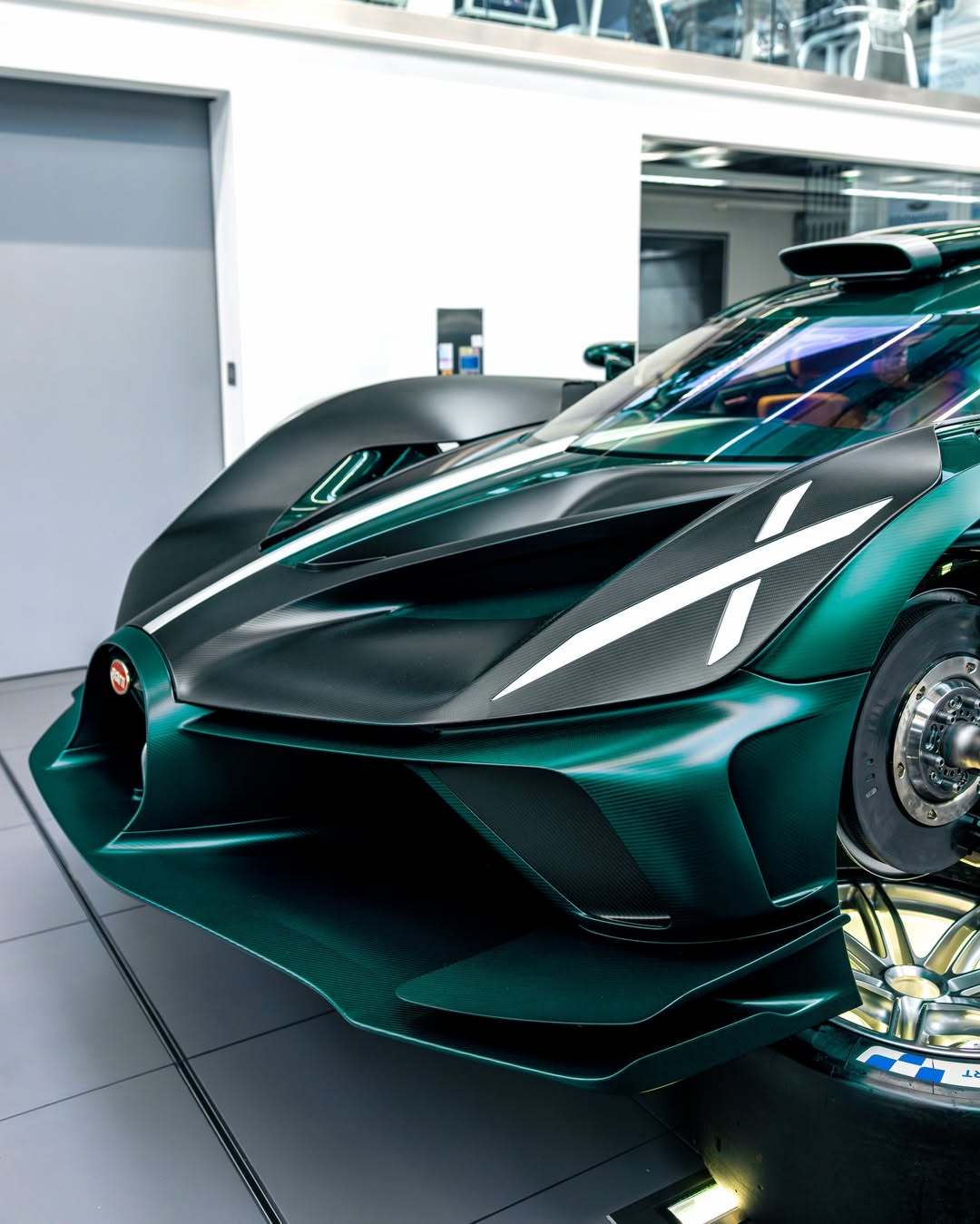 一天一张文艺照 正在“施工”中的可合法上路的布加迪Bolide,叫绿色地狱,由Lanzante做的合法上路改装~