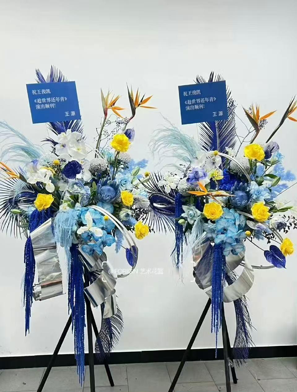 王源给王俊凯送的花篮王源祝王俊凯趁世界还年青演出顺利王源给王俊凯送的花篮,蓝色帝