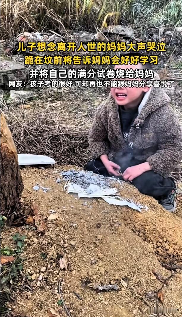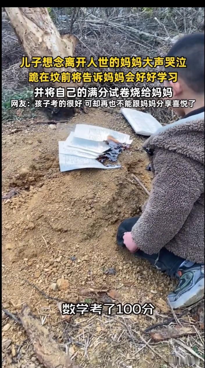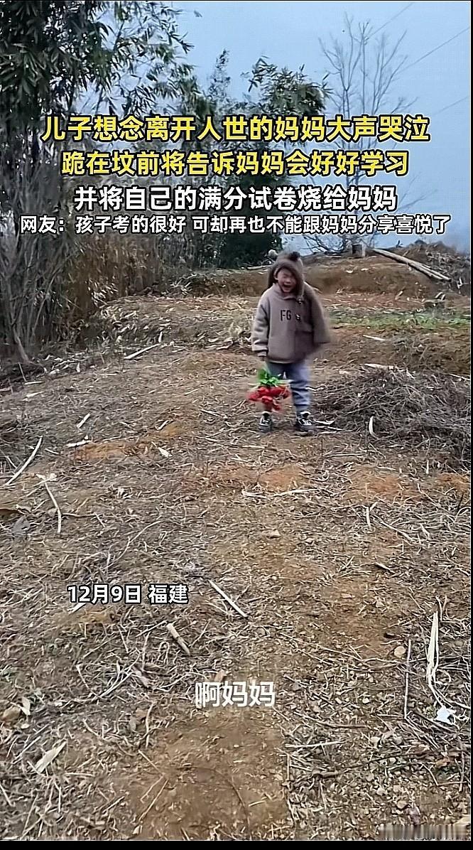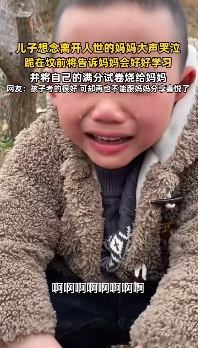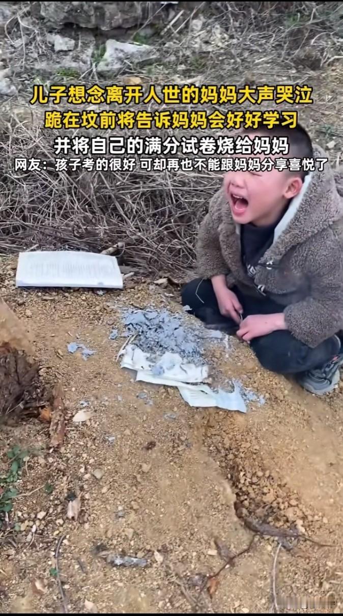 看的让人心疼落泪!孩子手拿玫瑰花束,在离妈妈坟前还有几米远,喊出第一声妈妈,瞬间伤心大哭,一路哭着奔向妈妈坟前,一声声妈妈,叫的人心都碎了。 小小的身影,跪在妈妈面前的黄土上,跟妈妈述说着自己会好好学习,语文数学都考了100分,还把自己的试卷烧给了妈妈。 孩子看着试卷燃成一片灰烬,忍不住崩溃大哭。 一声声妈妈的呼唤,让人破防,跟着流泪。 孩子不哭,妈妈会变成星辰守护你,福佑你安康,会化成风来抱抱你,吹干你眼泪。 父母心碎瞬间 儿子瞬间落泪 母亲心碎瞬间 宝宝哭泣瞬间 孩子 亲人