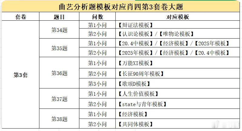 曲艺老师模版与肖四对应!老师开直播讲了,1️⃣老师说第一套含量比较低,后面三套比较重要2️⃣有些题比较偏是害怕反押题希望大家都能上岸!考研政治 曲艺模板