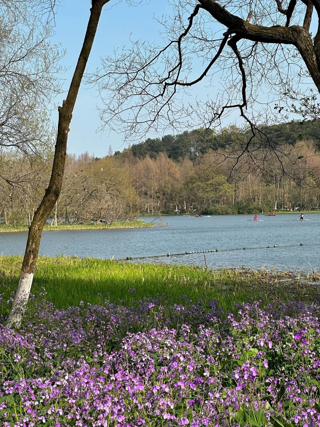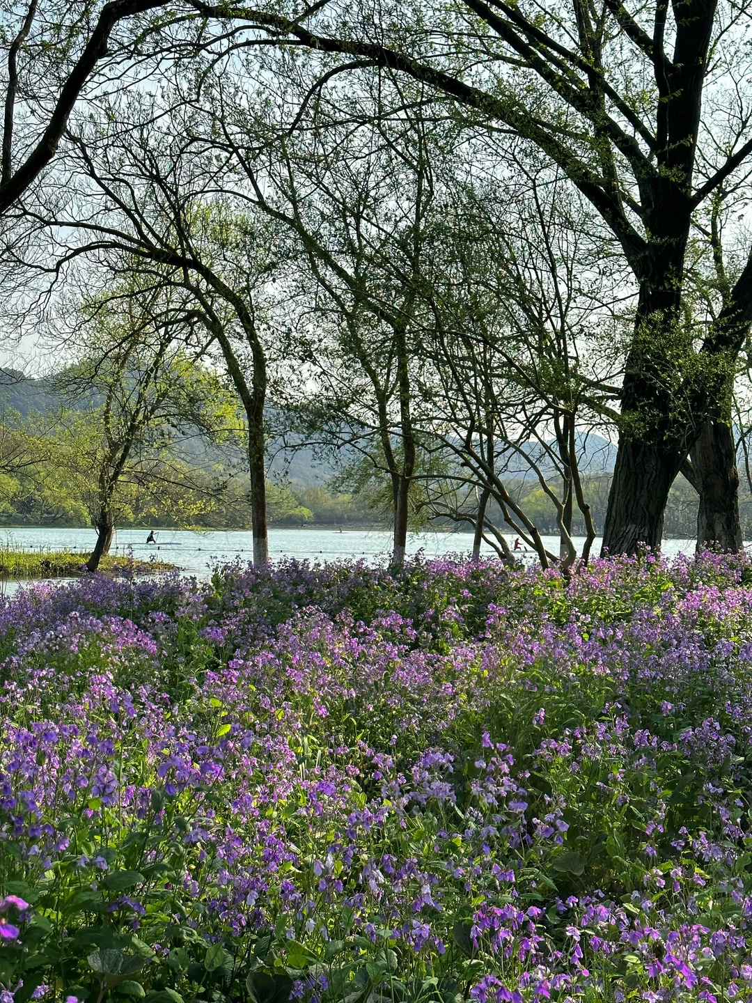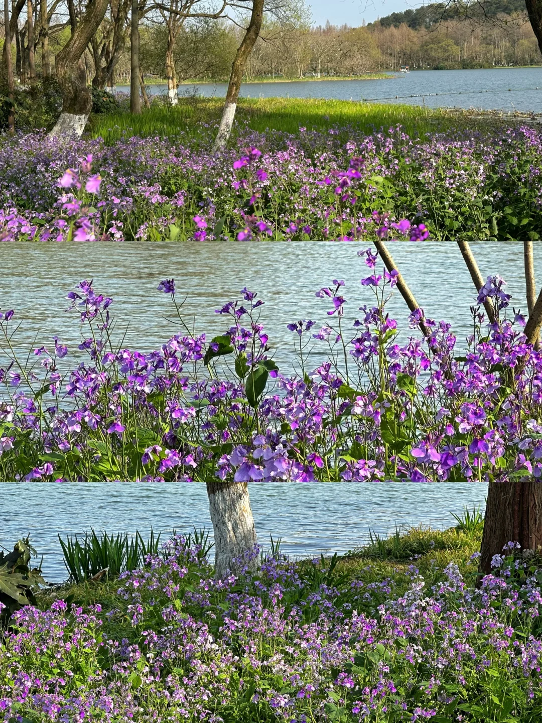 西湖边的茅家埠,二月兰开的正盛