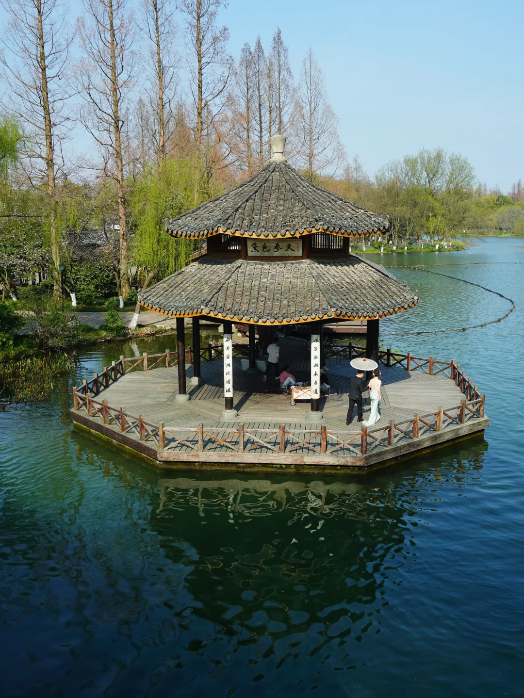 漫步在湖边,微风佛面,一步一景