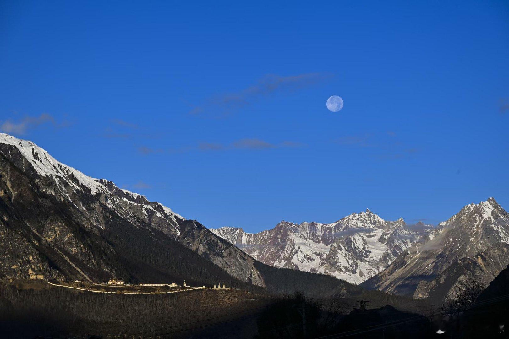 圆月当空雪山飞华