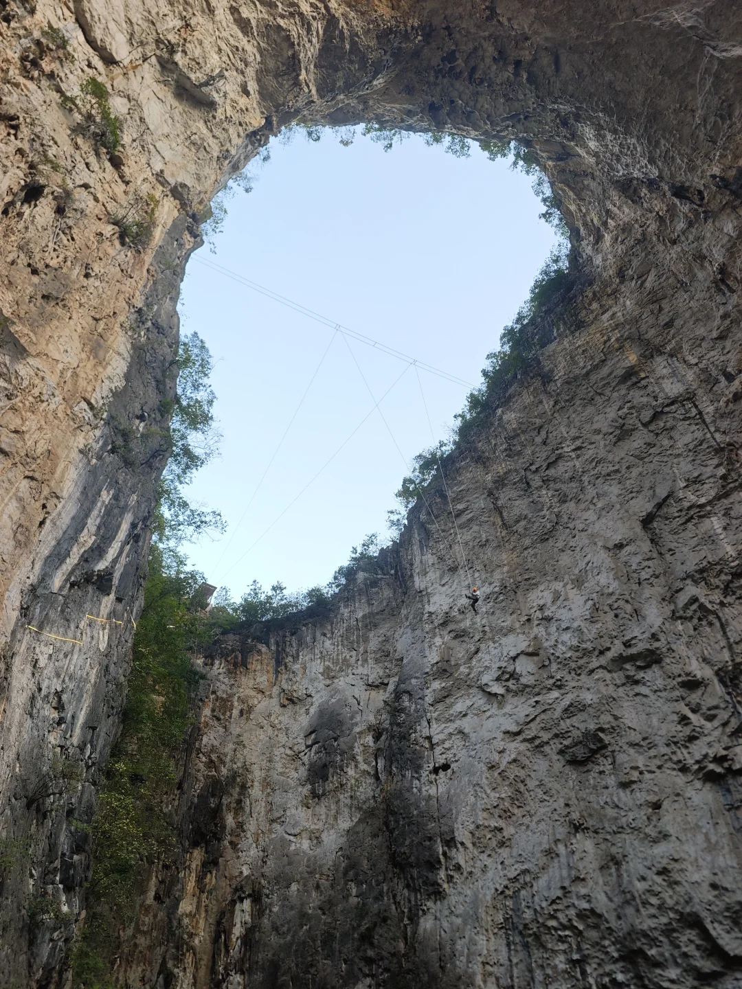 ②大秋千,先爬飞拉达到跳台,跳下去的时候有2s左右的失重感,然后又很过瘾了,抬头看天坑风景无敌了,自由感拉满