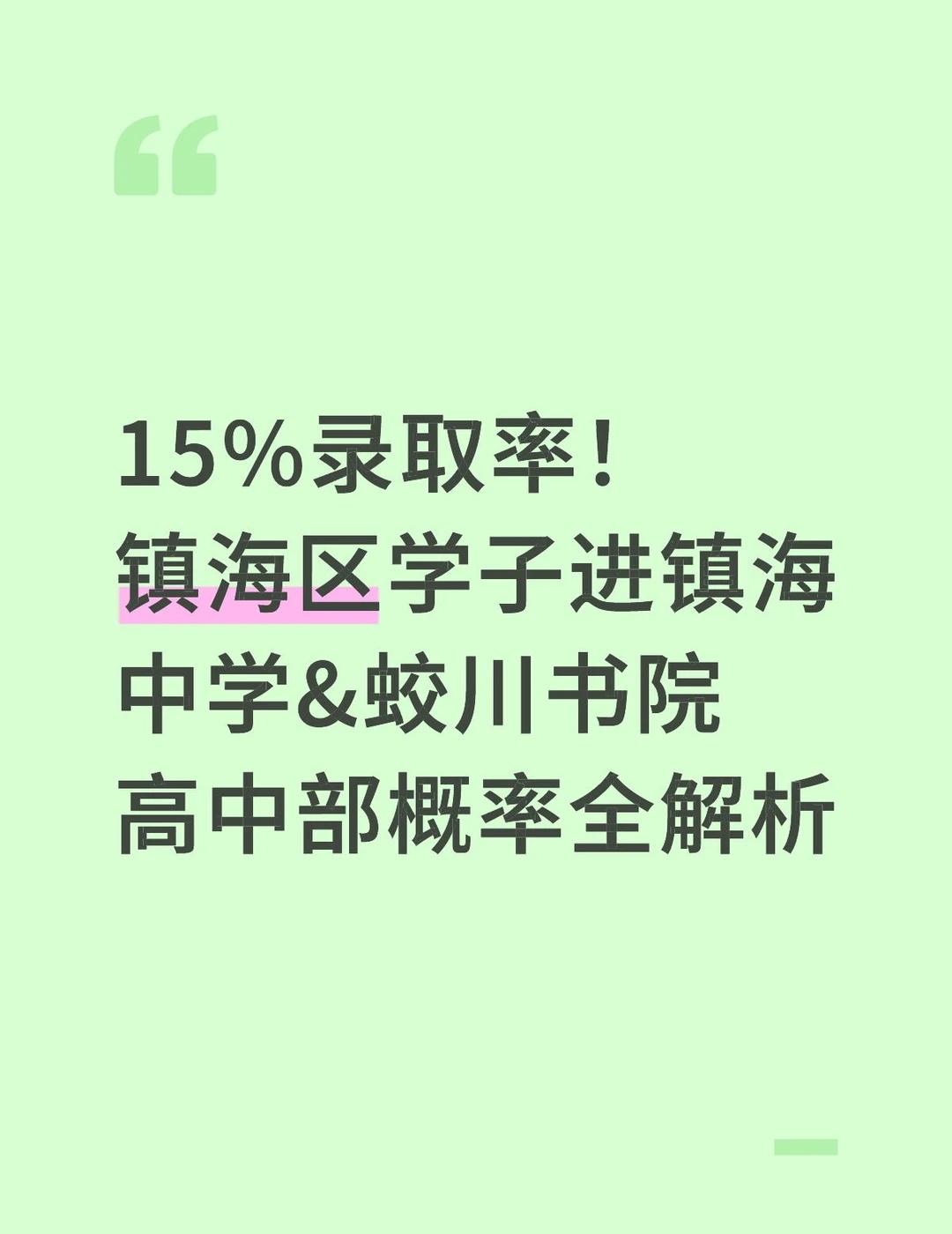 15%录取率!镇海区学子进镇海中学&蛟高概率 15%录取率!镇海区学子冲刺镇海中学&蛟川书院高中部概率全解析 今天聚焦镇海区,深度剖析本地学子考入镇海中学及蛟川书院高中部的上岸概率。这两所名校的录取概率,与就读初中、升学路径强相关,具体如下: 1. 整体录取概率:15%区间优势显著 2025年,镇海中学(不含体艺特长生)招350人,蛟川书院高中部招384人,两校区内统招合计约734人。过去三年,镇海区学生录取概率逐年微降,分别为17.3%、16.8%、15.7%,相较于宁波市区的激烈内卷,优势十分明显。 2. 按就读初中划分:校际差距悬殊 蛟川书院初中部作为核心生源基地,学生考入两校的概率约50%,报考蛟川高中部还能享降2分录取政策;仁爱中学等区内公办初中,录取概率约18%;立人、中兴等其他初中学生,需争夺镇海中学定向名额,录取概率低于仁爱中学,处于区内中等水平。 3. 按升学路径划分:定向比统招更易上岸 定向分配是进镇海中学的主流路径,占招生比约60%,学生需满足连续3年镇海学籍条件,校内竞争名额,概率高于统招;镇海中学统招仅占40%,2025年统招线比定向线高6分,裸考竞争激烈。蛟川高中部不参与定向,以统招为主、自主招生为辅,非蛟川初中学生录取概率更低。 4. 特殊群体概率差异:户籍与特长影响录取 2021年8月31日后迁入镇海户籍的考生,2023年报考蛟川高中部分数线更高,录取概率更低;学科竞赛获奖的拔尖学生,可通过拔尖创新人才选拔或特长生通道入学,录取概率远超普通统招学生。 宁波教育 镇海区升学 镇海中学 蛟川书院