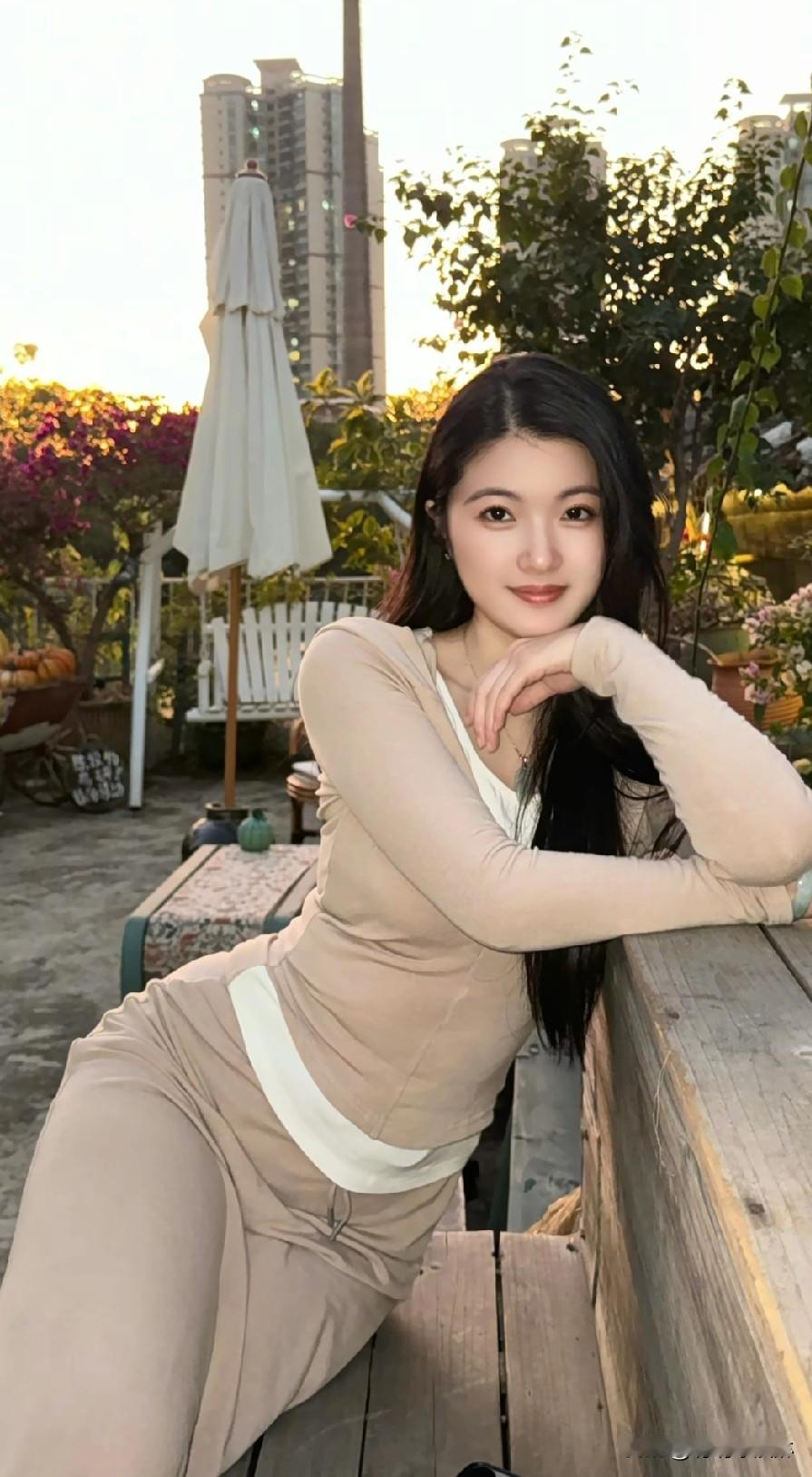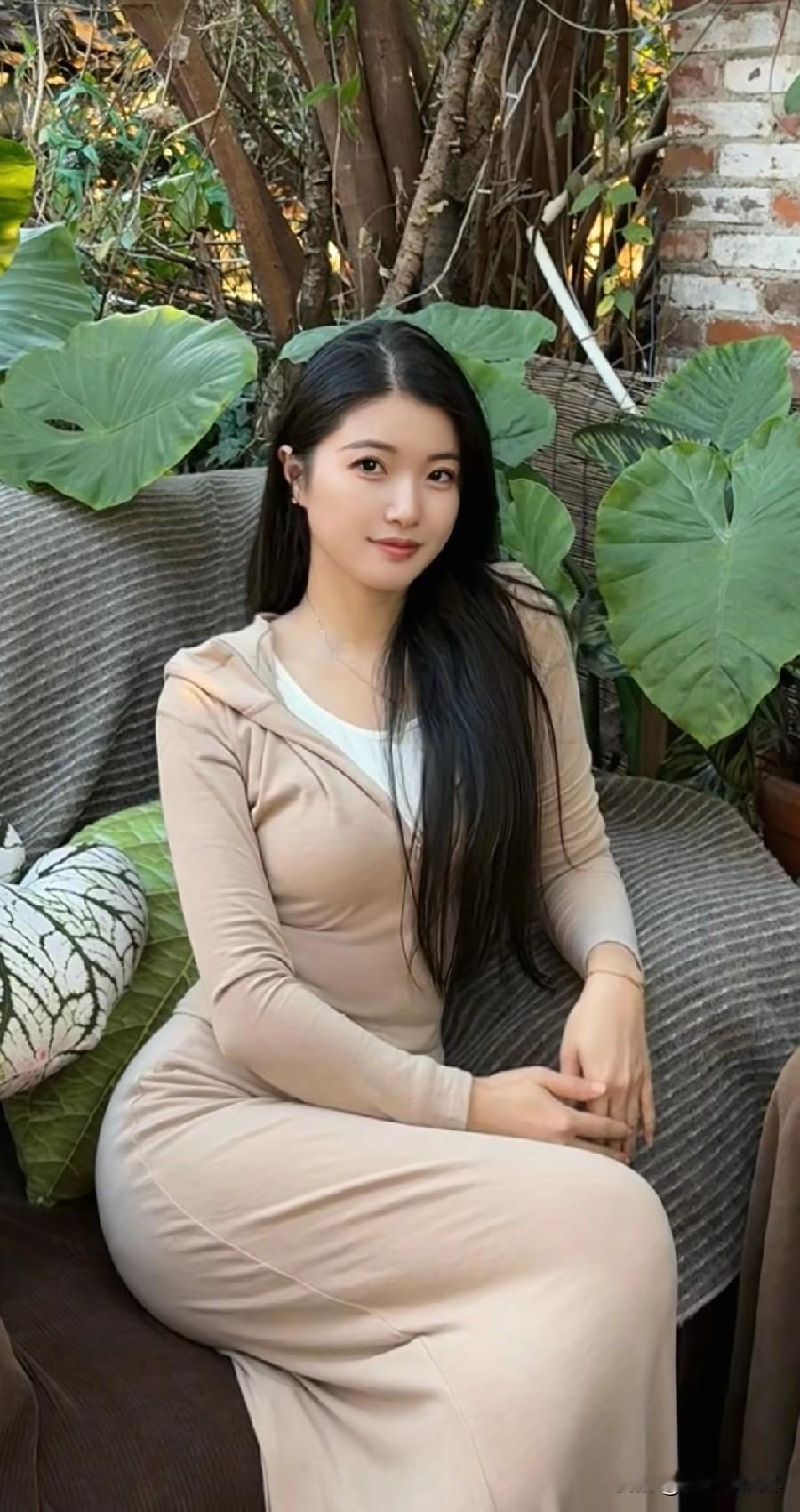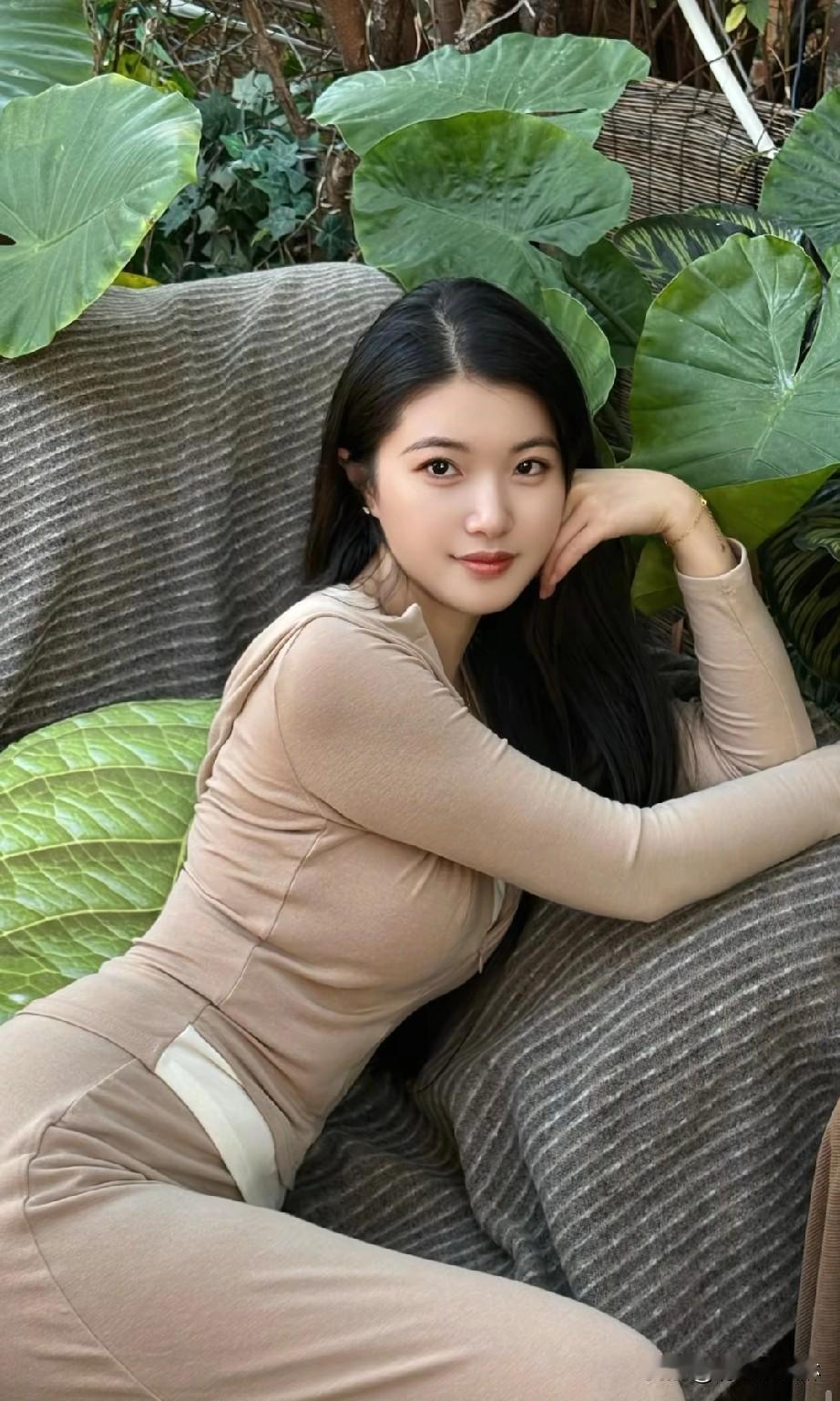 自然光下的清新自拍,在绿植环绕中,享受宁静时光。