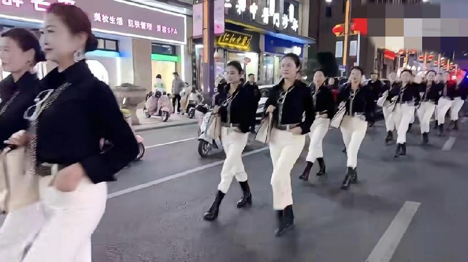 穿着时尚的“大妈暴走团”非常自信的走在夜幕下的街道上,服装统一是:上半身穿黑色紧身衬衫,下半身穿白色紧身裤,脚蹬半高黑色皮靴…… 网友吐槽:显摆自己有退休金呗,就这种,没退休工资可玩不起,退休工资少了都不行!由此,我也对我们国家“女人的退休年龄早于男人五年甚至十年”的这个政策,真的有点搞不懂,女人平均年龄要比男人长几年,退休年龄却要早几年。在退休工资领养这一块,女人明显比男人占了很大的便宜。 看看这些大妈,精神这么好,为什么让他们这么早退休?