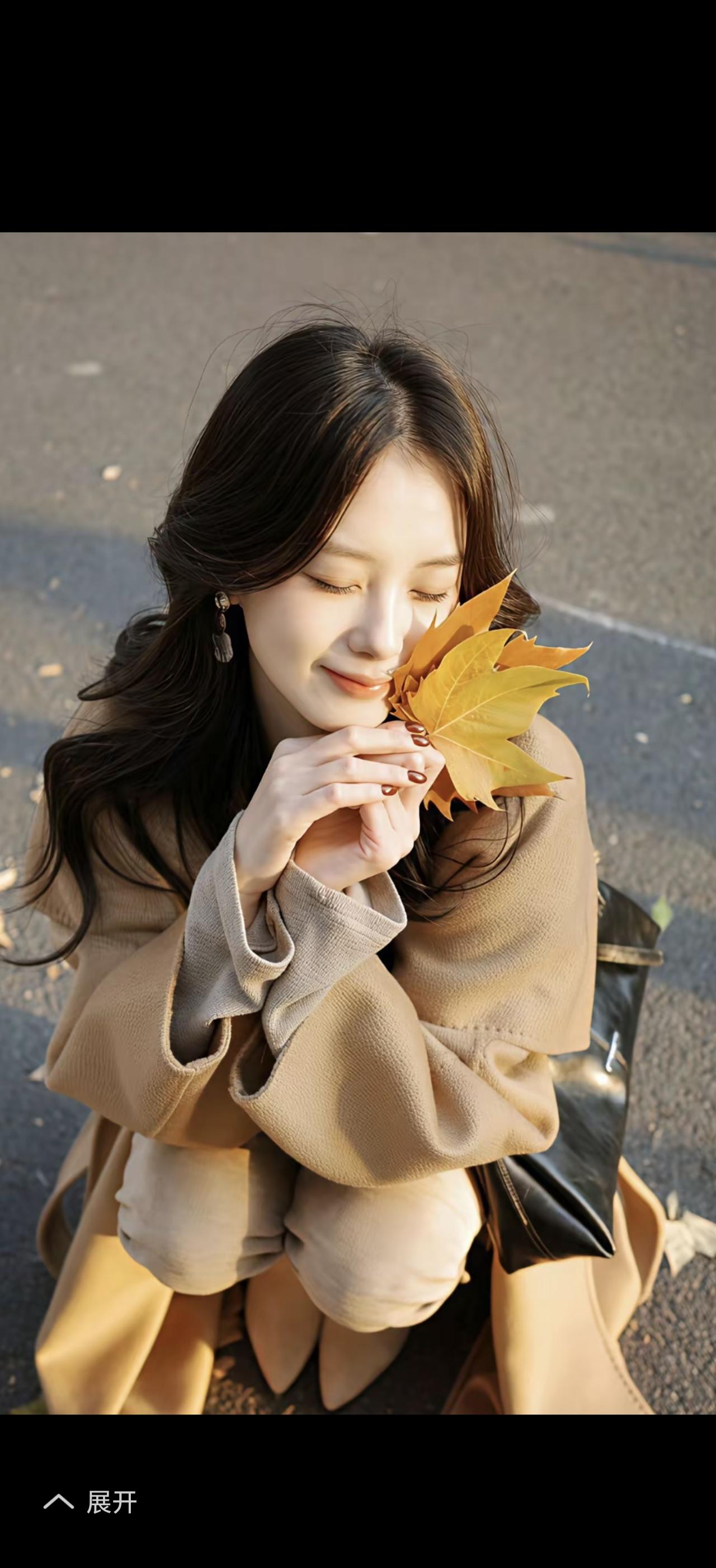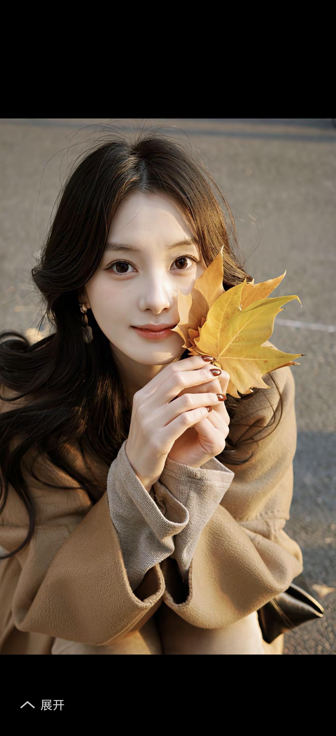 秋日暖阳下的温柔少女,手捧落叶,笑靥如花。
