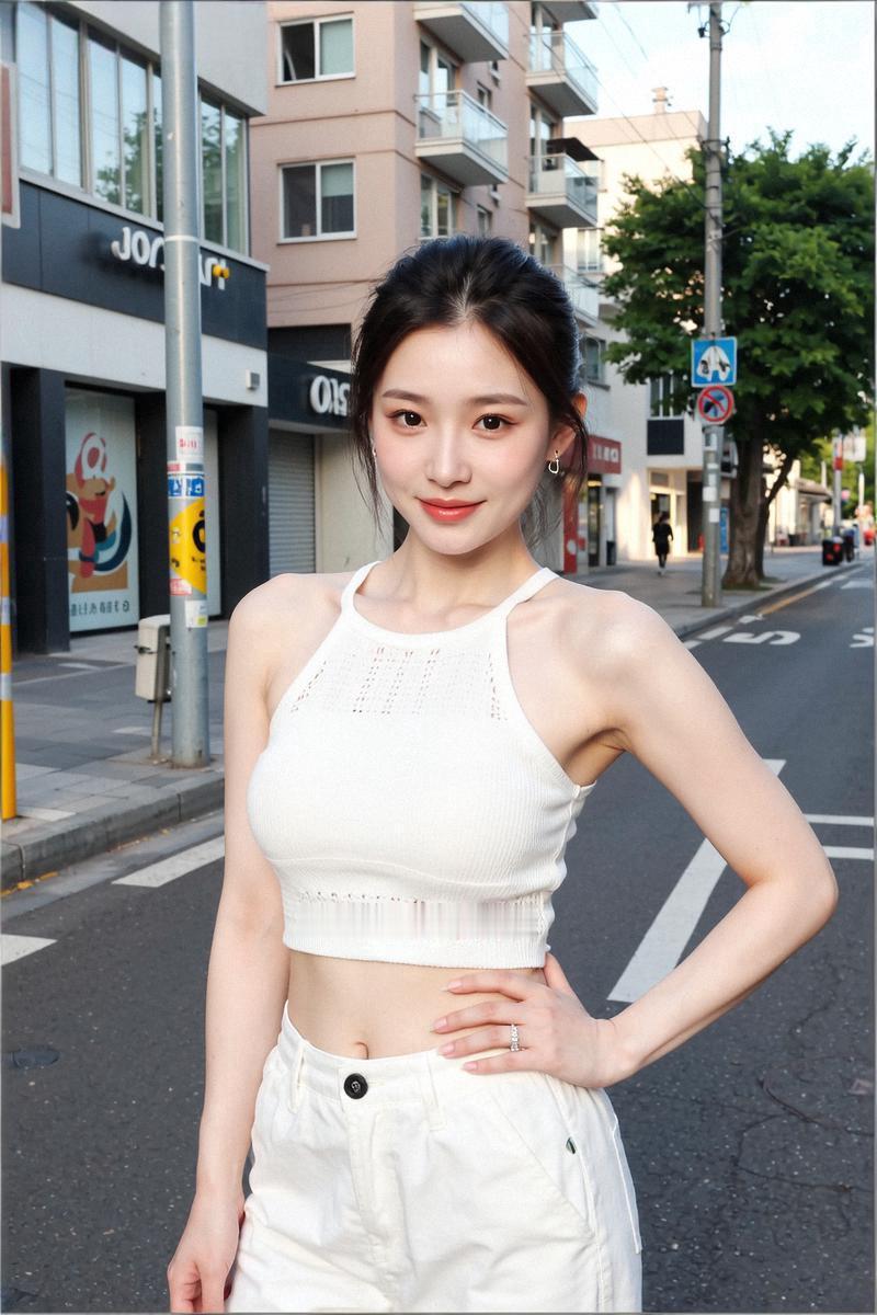 阳光下的甜美少女,白色毛衣与黑色长袜的完美搭配,尽显青春活力!