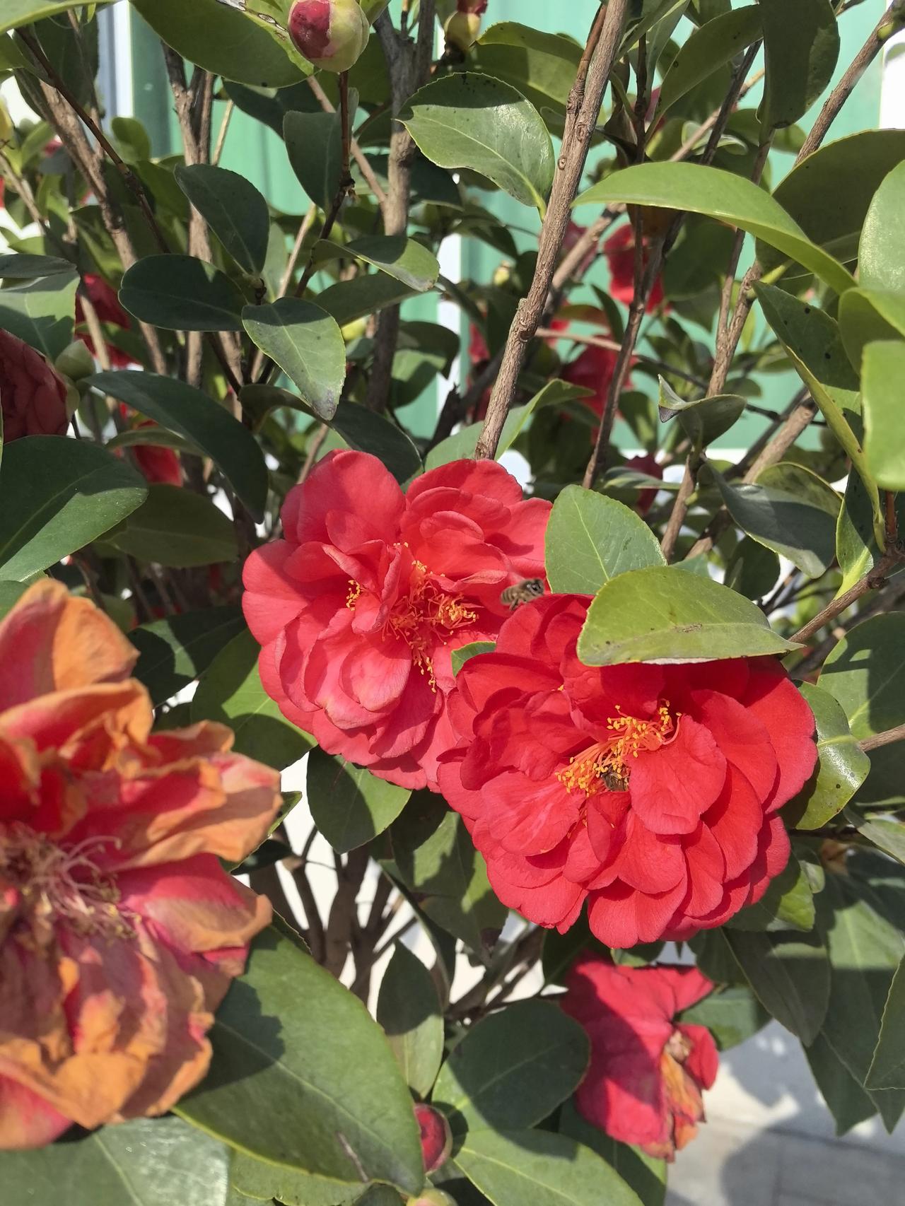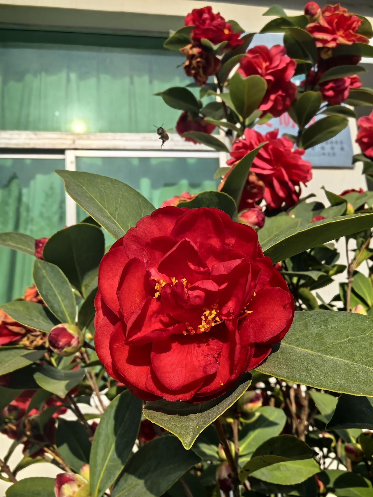 门口的一大盆茶花,养的真好!可以用繁花似锦来形容,大朵大朵的红色花娇艳欲滴,给这个晦涩的冬天带来了一抹生机。蜜蜂🐝也来了,辛勤忙碌着,还有很多花苞待开,一茬接一茬的,送给人间美丽。