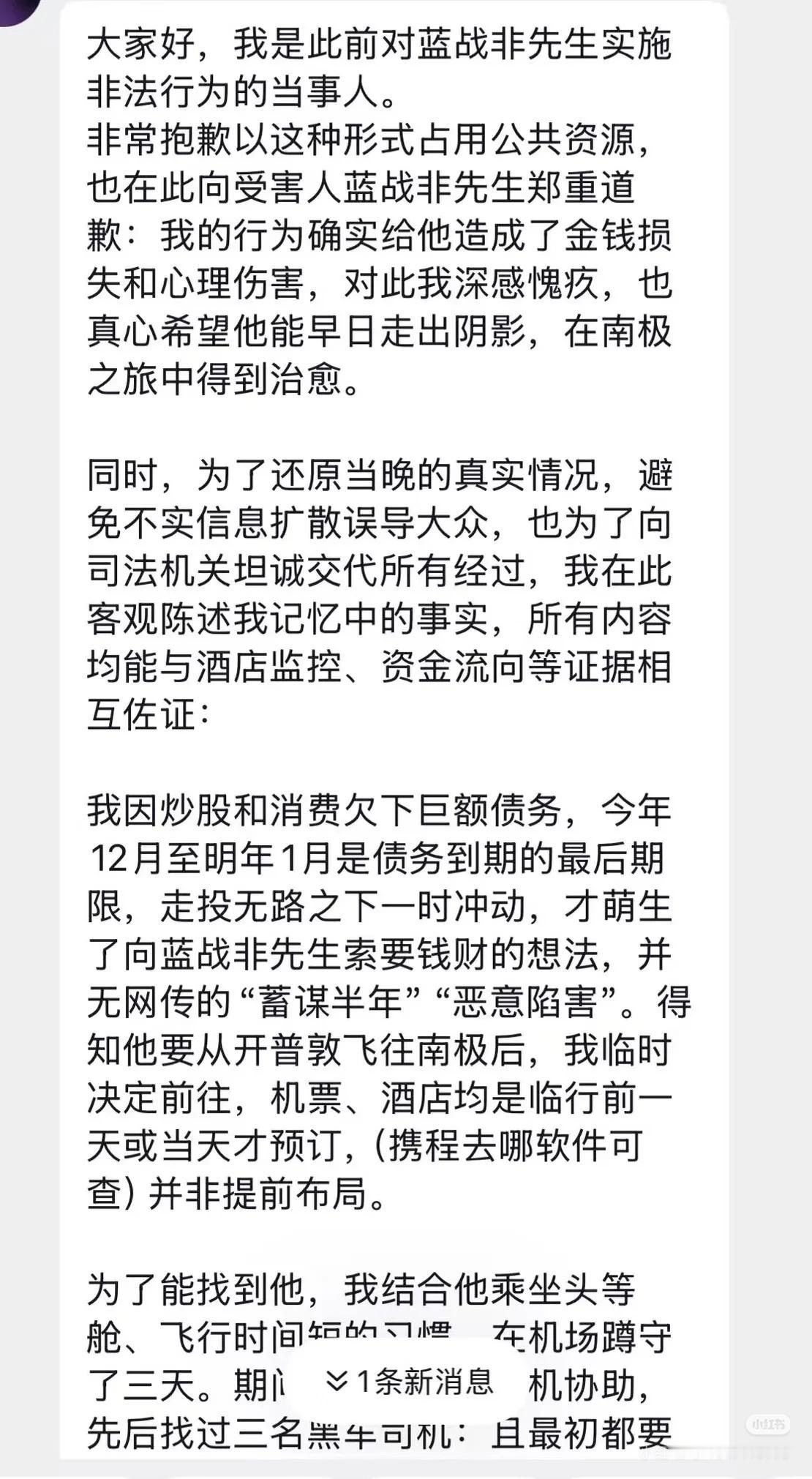 疑似绑架蓝战非的人自首他说被绑架了很魔幻,这个劫匪自首了的也很魔幻,话里话外的意思是,都是我一个人的问题,跟航空公司、酒店、出租车行业无关,我已自首,大家可以继续去南非旅游?