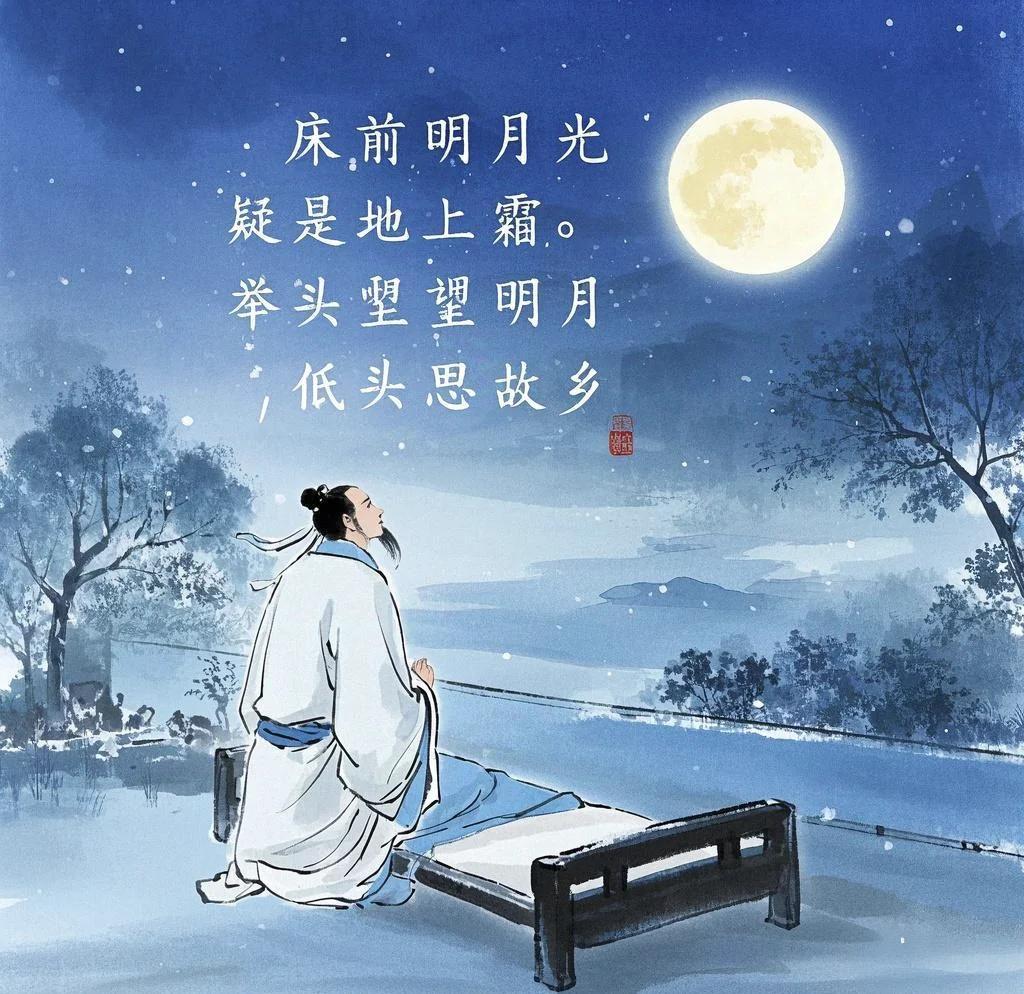 床前明月光, 疑是地上霜。 举头望明月, 低头思故乡。 李白写这首诗,人到了中年才有体会: 床前明月光,疑是地上霜。 皇恩福泽落到百姓身上,往往如霜般冷,李白经历了太多一道圣旨如坠地狱,估计当时又听到了一些皇令,想到百姓或底层人民或自己未来不堪的未来,有一种焦虑。 举头望明月,低头思故乡。 举头看看,想想这么多年仕途坎坎坷坷,风风雨雨,也累了,也倦了,算了吧,心里一道伤疤一道伤疤,回吧,回家吧,不想奋斗了,太累,也没未来! 估计这首诗写在李白中年时候,只有中年有这份心境!