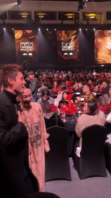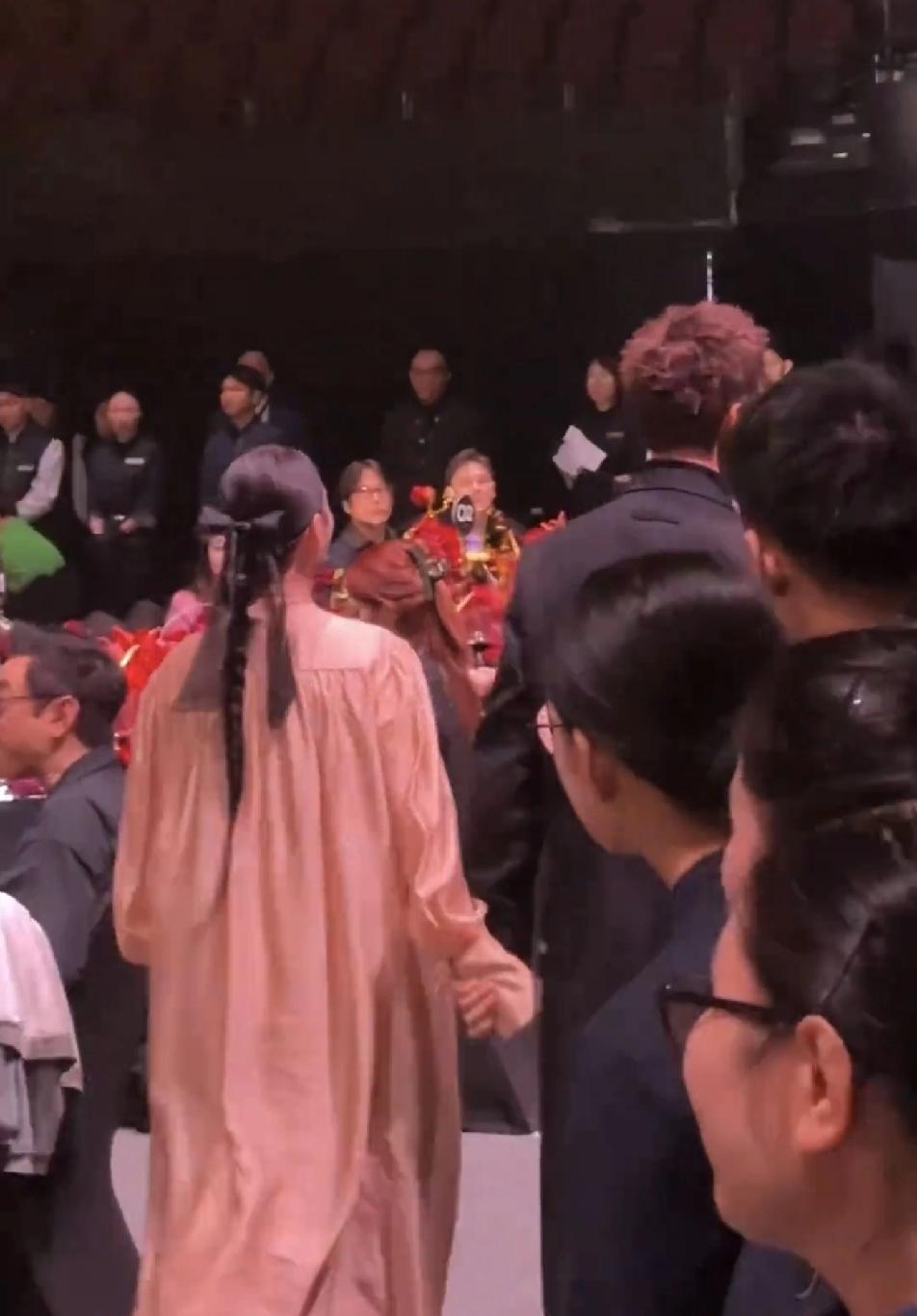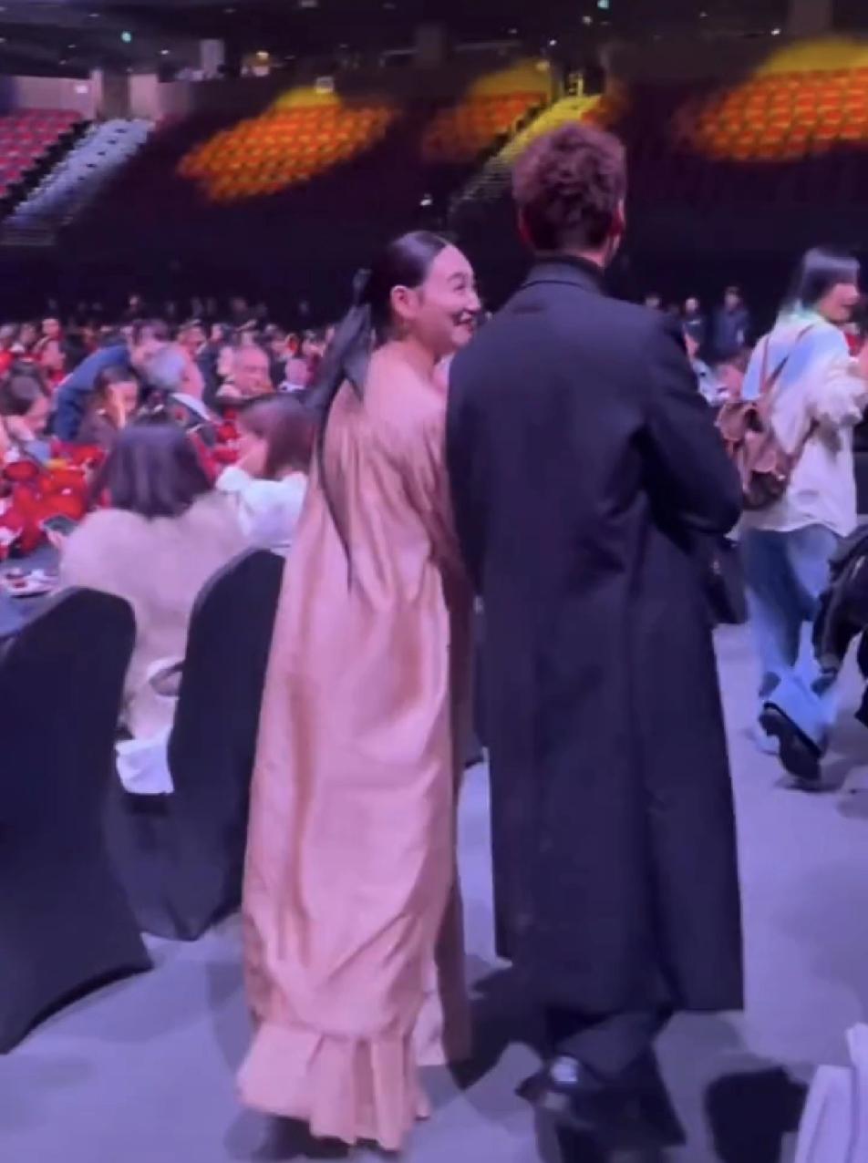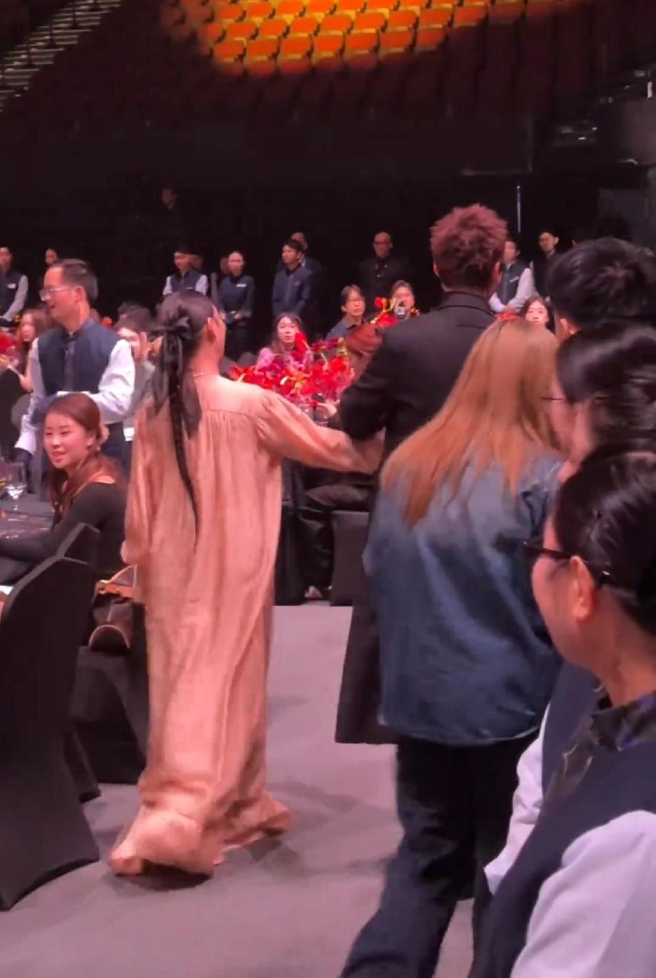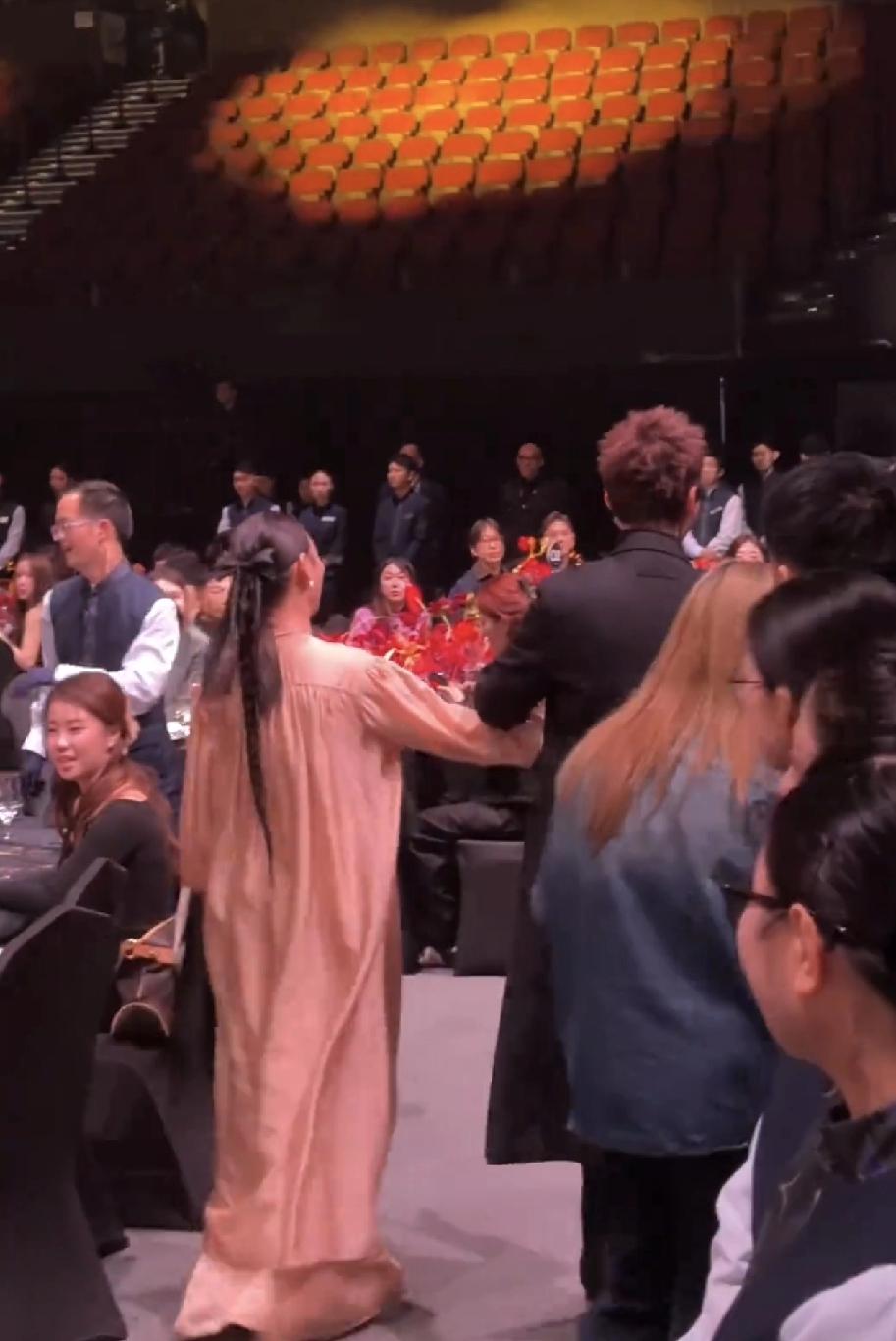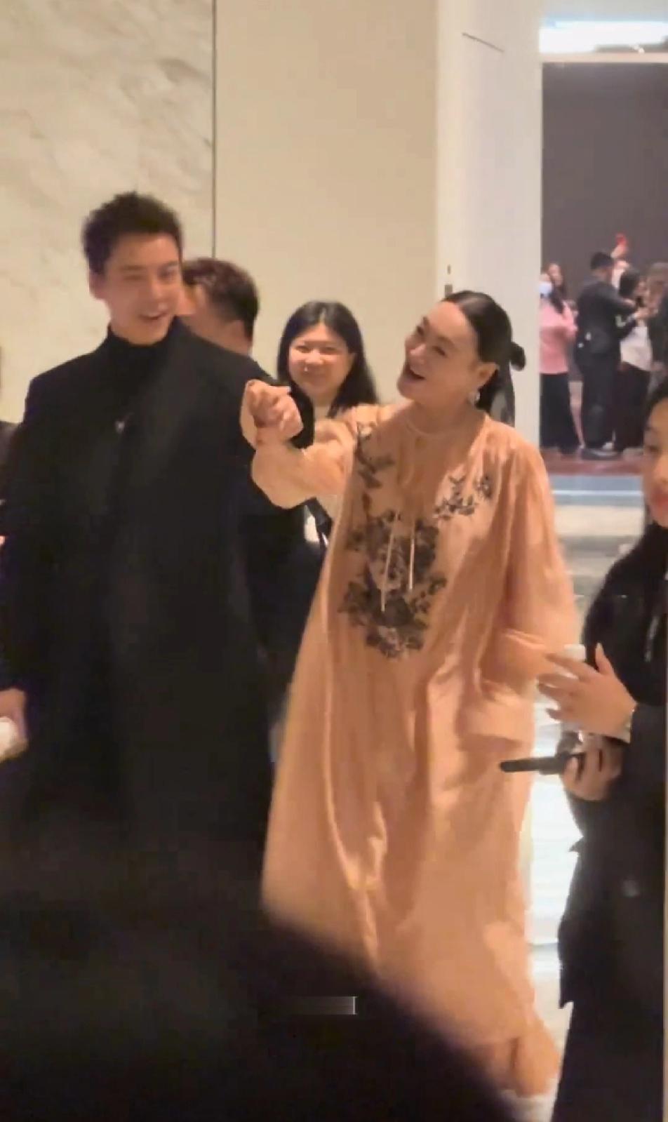 65岁的惠英红和陈伟霆小手一牵,竟莫名有了满满的少女感,看背影,红姐粉色长裙仙气