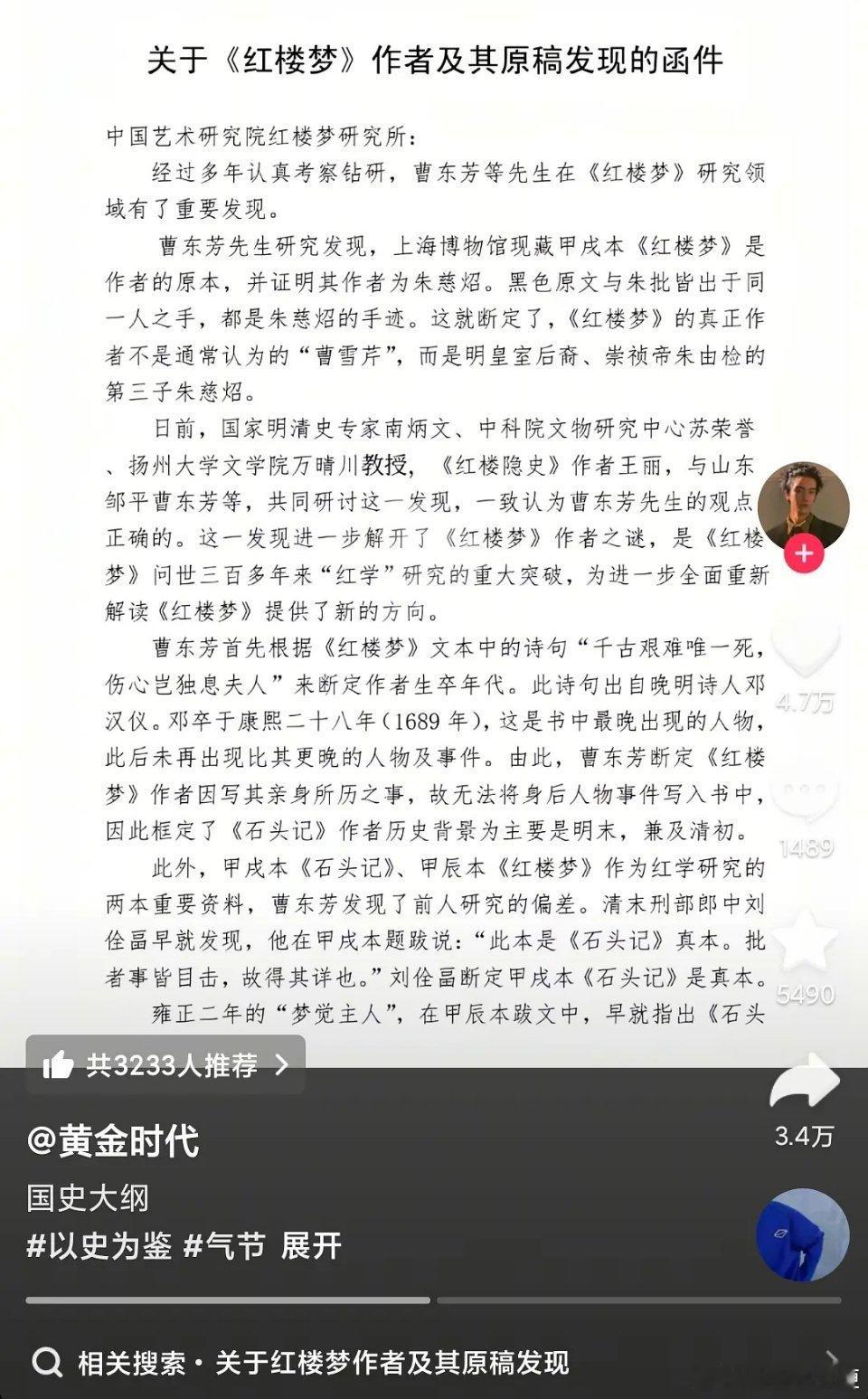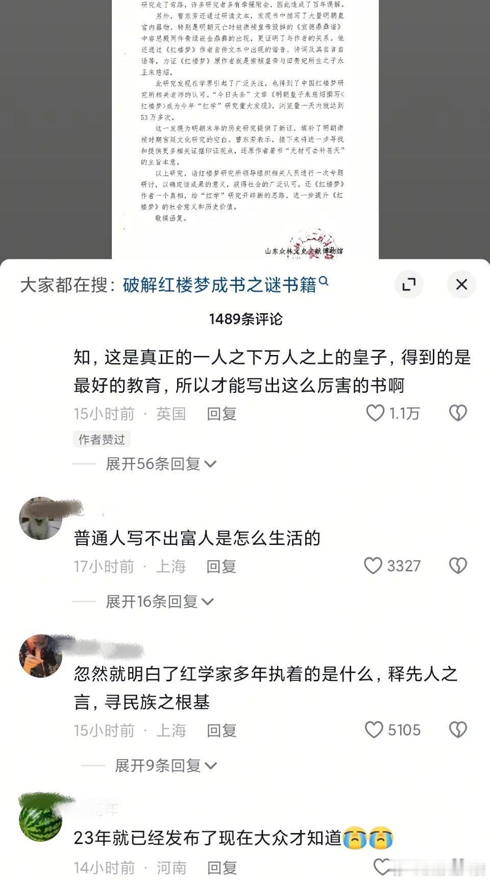 OMG抖人已推翻红楼梦作者。这篇论证甚至还引用了今日头条浏览量50w+作为论据