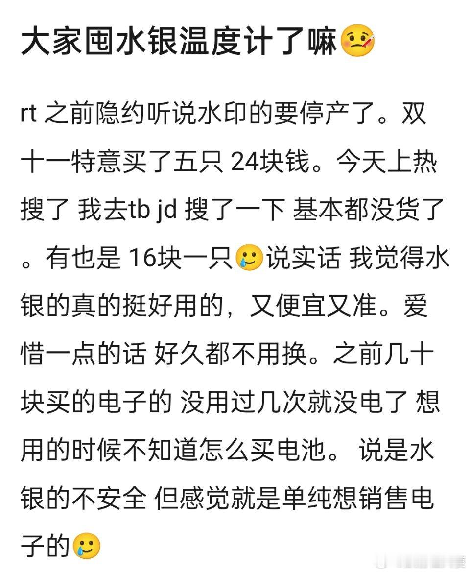 大家要囤水银温度计吗?听说马上要停产了,我也觉得水银温度计挺好用的,从小用到大。