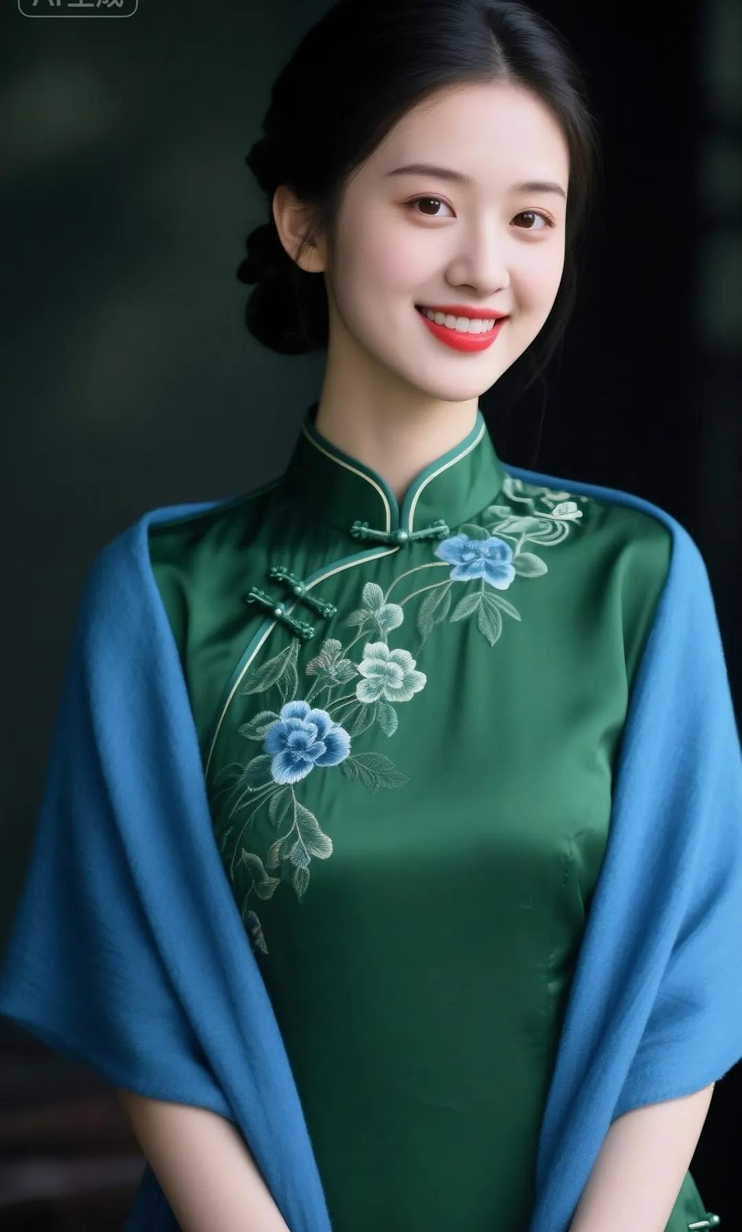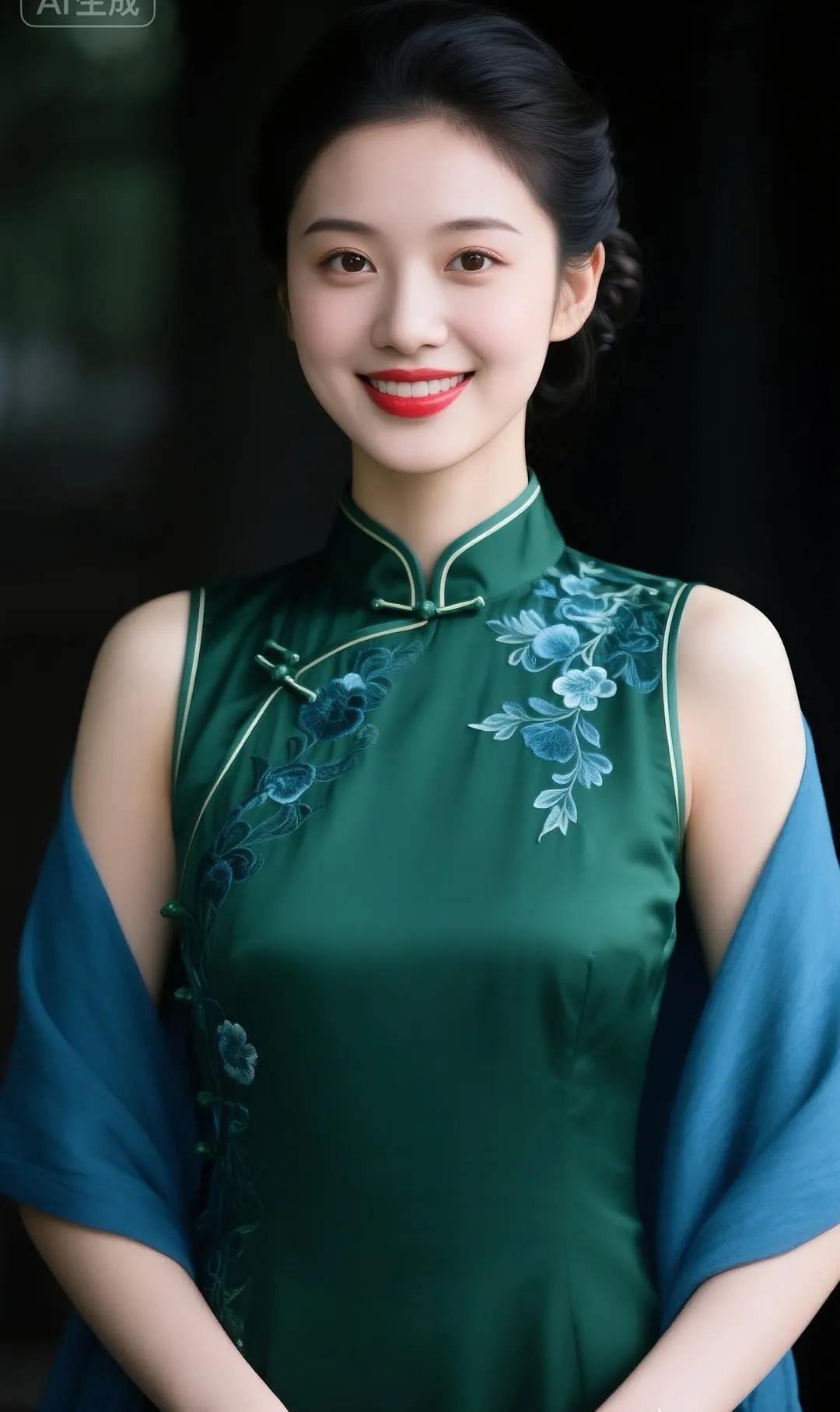 温柔蓝调,优雅旗袍,绽放迷人微笑