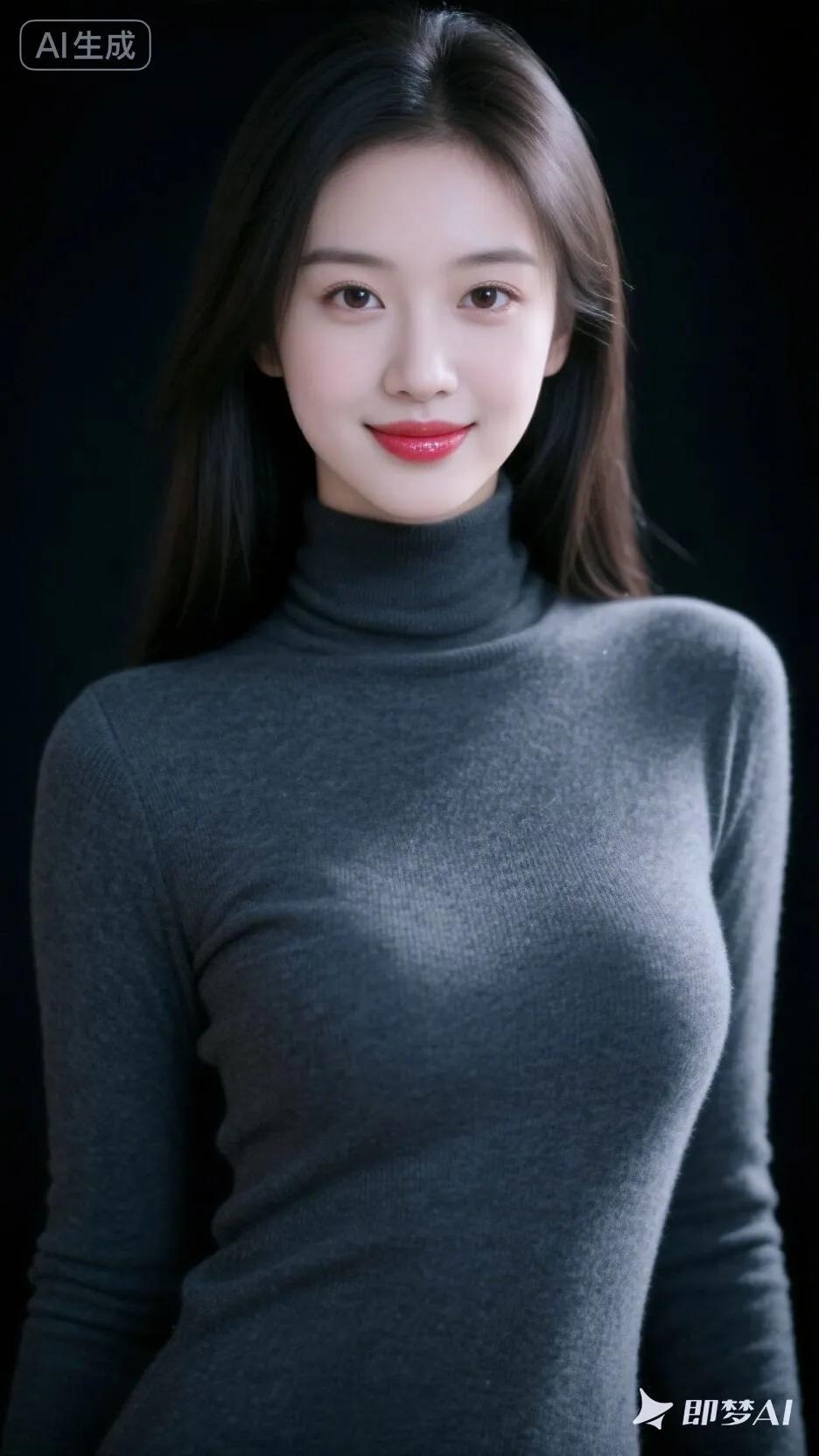 这姐姐长得真让人移不开眼!黑色短发衬得脸蛋又圆又精致,眼睛亮得像星星,笑起来特别