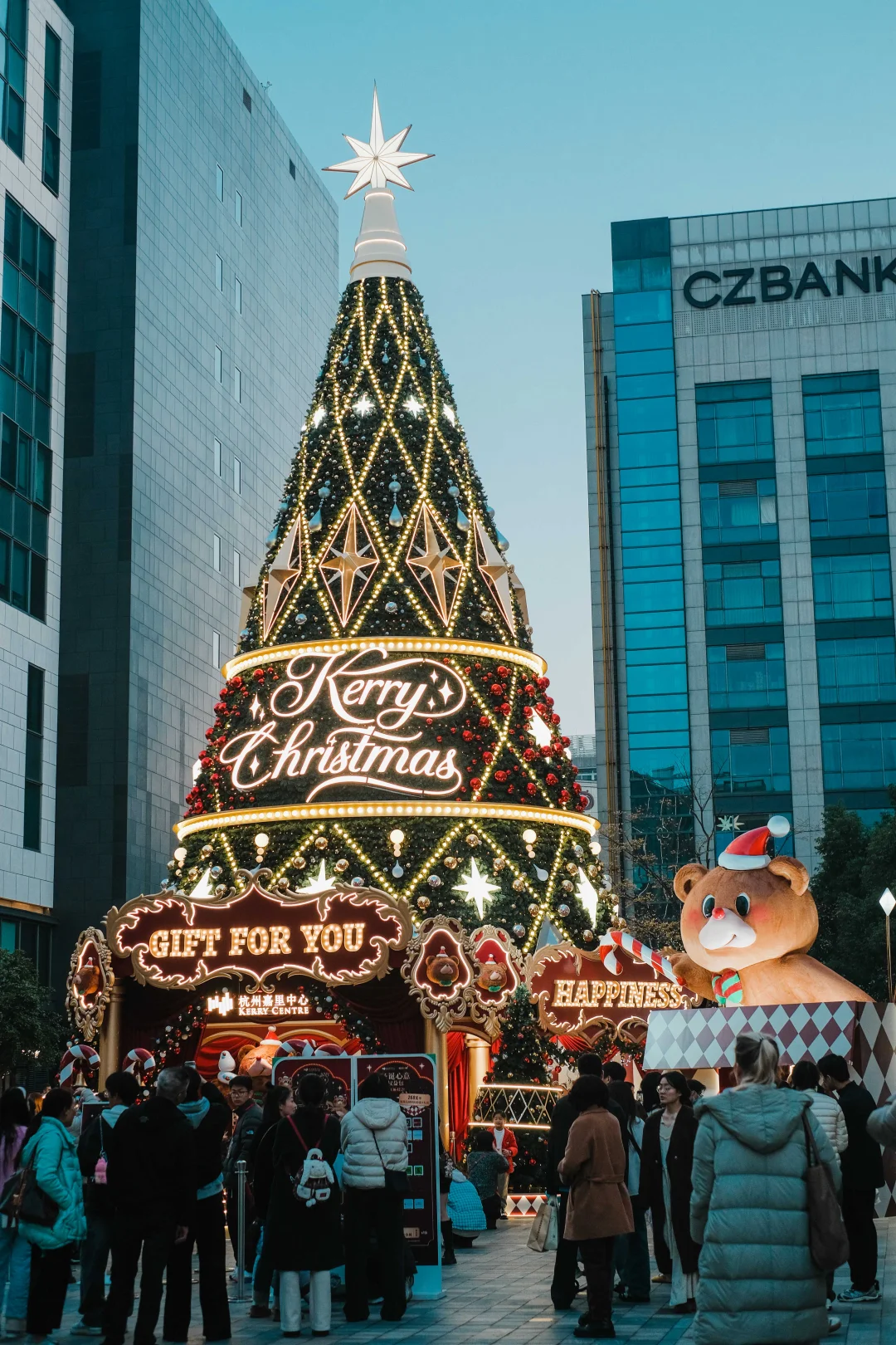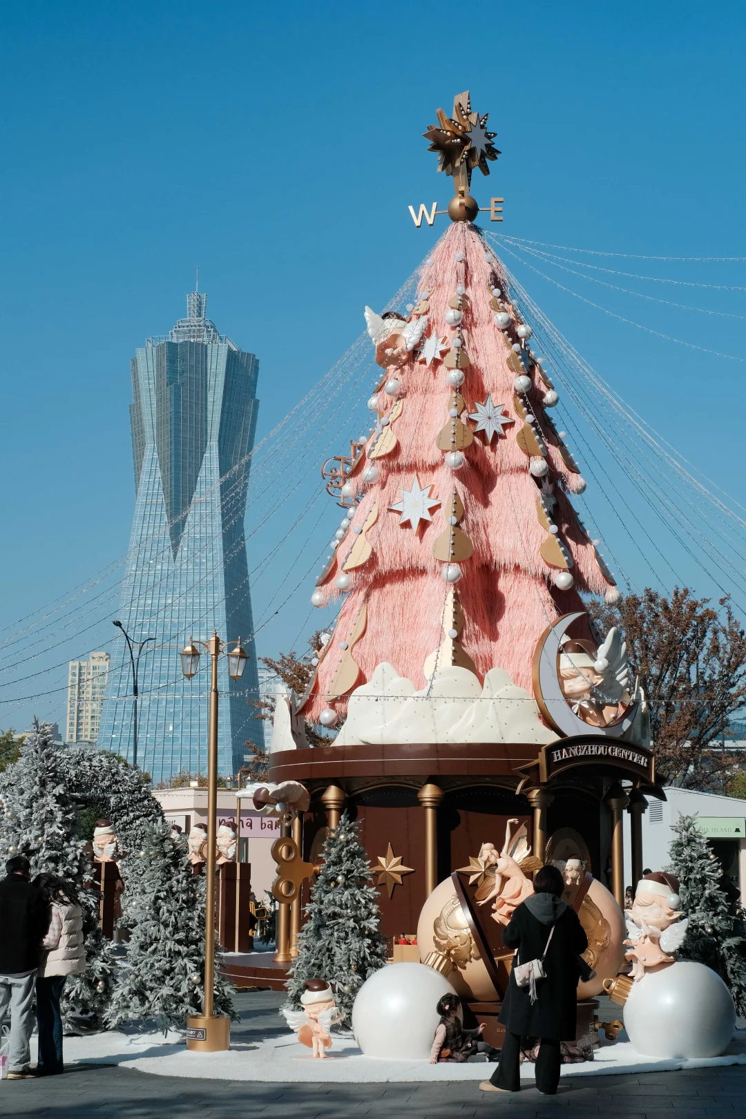✅杭州中心:粉色的圣诞树,拍完还可以在杭州中心逛一逛;