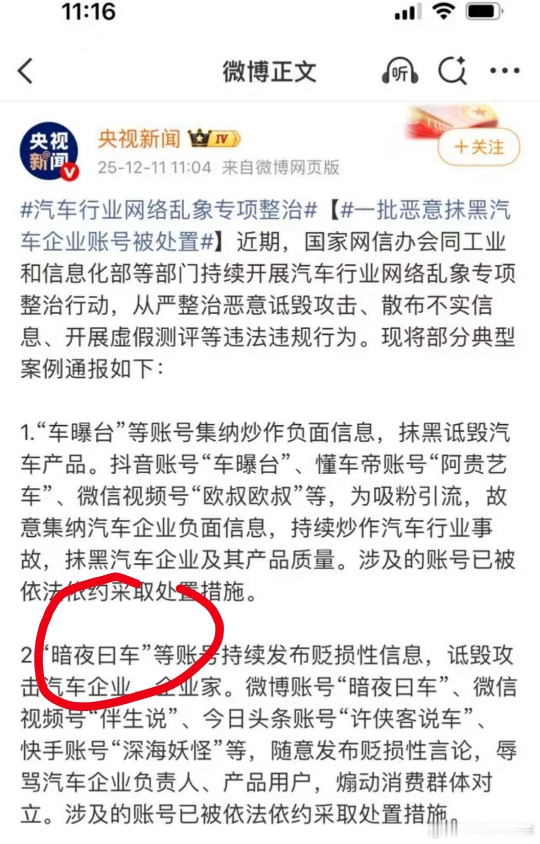 坦率的说,暗夜这种V,对于他喜爱或者讨厌的车企,都是灾难。他的行为已经突破了一个正常媒体人的认知,他的传播已经变成了吹还是黑都是灾难.....我和这位的唯一半次交道,还称不上一次,是在有次他发了微博秀岚图的一个礼品,说是自己发博文赚来的,好像是一个无人机,大几千,我还很疑惑,岚图什么时候这么大方了?岚图那边的社区就炸了,车主说人家凭啥发一个博文动动手指就可以赚这么多,跟着来骂岚图公关和传播,他还跟着秀,我去问岚图的公关,人家公关哭笑不得,说根本没这回事,从来没送过这种,估计人家自己买的拿出来秀而已。为了秀优越,把车企、社区和公关都带坑里面,对自己还没有好处,这个操作也是神奇。后来,他网络不断的操作,真的把这样的操作演绎的淋漓尽致,因为每次他那家车企的大负面,他要么原创,要么助攻,要么搅局......谁能在全网带阴间效果负面场景的时候,想着后备箱躺板板这种操作?谁能在明星去世的时候配一个MEGA的图片说这才是经典?谁能在车自燃风波中,亲自演绎后门不开翻阅到前门10秒内逃生连滚带爬,增强大家对后门打不开的印象?这个操作,别说其他车企了,我要是理想公关都要为把他封禁而叫好!更别说他充了其他车企的电,还要喷这个车企,被车企拉为黑名单之后还嚣张至极,这个态度不就是自掘坟墓嘛?最关键他还造谣蔚来投放他,除了恶心人没有任何价值的内容,被他玩的挺溜。自媒体的传播主流是正能量,而不是搅屎棍,不然走不远,暗夜是典型的不能再典型的典型了!这就是暗夜,这下他终于得偿所愿,暗夜了!水哥有话说