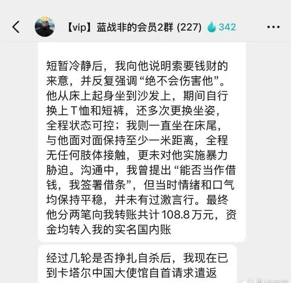 蓝战非披露的绑架细节令人发指:刀架脖颈索财、拍裸照逼签欠款文件、采集生物信息欲栽