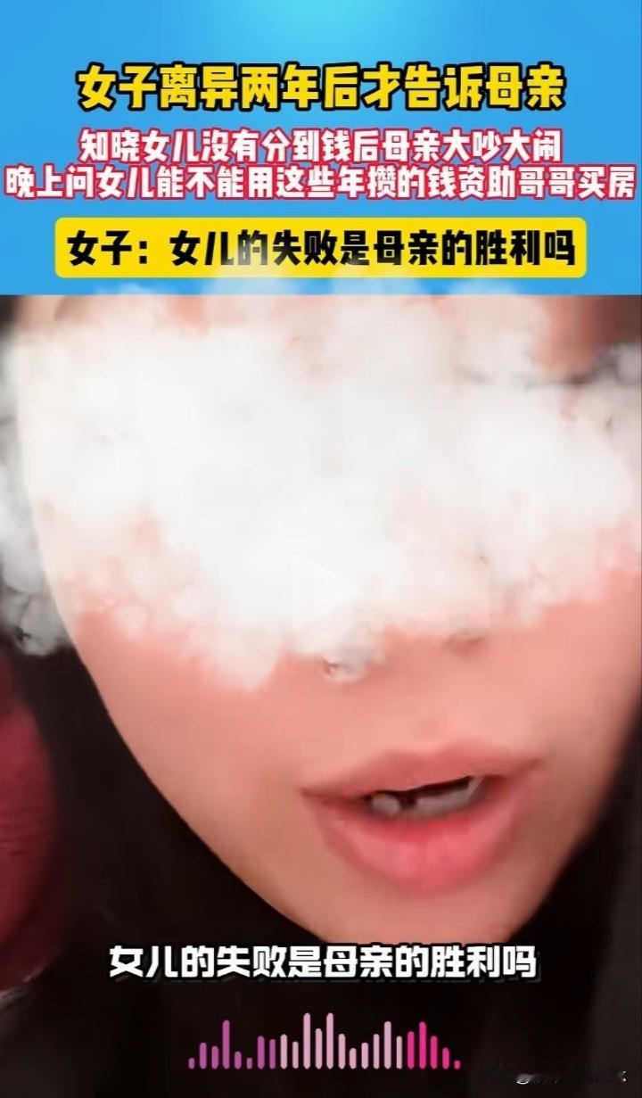 真有这样的母亲吗?母亲得知女儿离婚没分到钱大吵大闹,当得知女儿攒了钱后满脑是算计。 女子离婚两年后才告诉母亲,母亲的第一反应就是问分了多少钱,当女子告诉母亲没有分到一分钱时,母亲暴跳如雷,大声与女儿吵闹,为什么不分他的钱? 女子以为是母亲是担心自己离异后无法生活,因为当时自己没有工作。 为了让母亲放心,女子安慰母亲,别担心,离异这两年自己存了一些钱。 母亲听了之后脸色迅速缓和。 当天晚上,母亲就来到了女儿房间,问女儿,哥哥要买房,能不能支持一些? 女儿听后心凉了半截,感慨道,女儿的失败是母亲的胜利吗? 说真的,女儿离婚两年,在人生的低谷,却没让母亲知道,母亲也没感觉到女儿家庭的变故,就反映了原生家庭问题,娘家靠不住,说也没意义,女儿在父母眼中是隐形人的存在。 在现在这个社会,一个家庭顶多两个孩子,还存在这种啃女的思想,就是父母的人品问题。 有的家庭口口声声说生二胎是为孩子有个伴,给女儿生个娘家人,却做不到公平对待,实则是想生个女儿为儿子的人生保驾护航。 父母都靠不住,还能靠谁? 所以,女人得明白,娘家如果靠不住,自己一定要清醒,有主见,不要被卖了,还帮着数钱。过好自己的日子,尽些赡养义务就行。