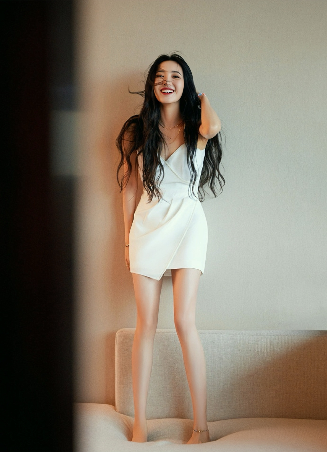 王紫璇,长发白色小短裙,优越的大长腿。王紫璇
