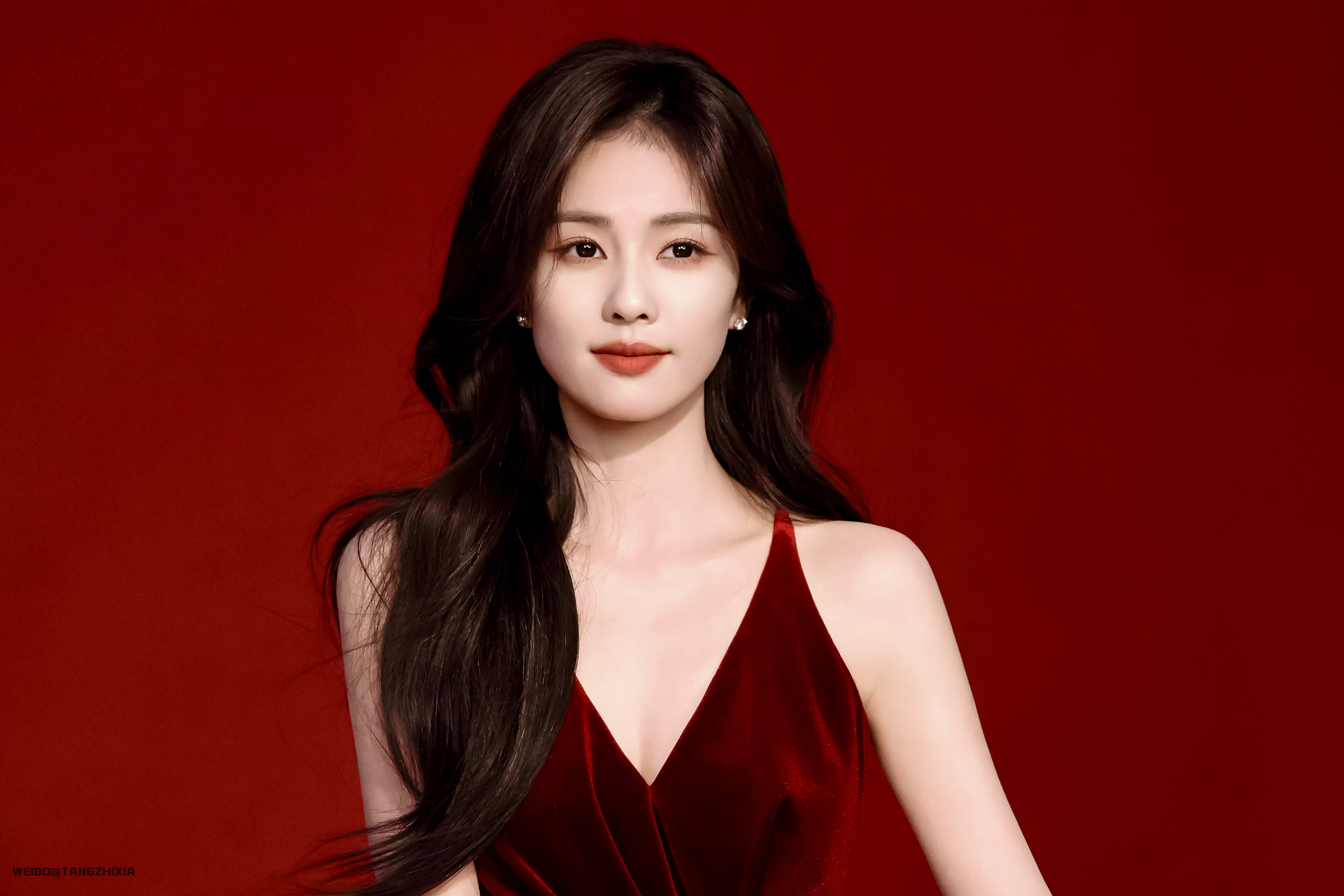 白鹿花朵红裙红裙好美的白梦妍,期待演员白鹿2025星光大赏🌹
