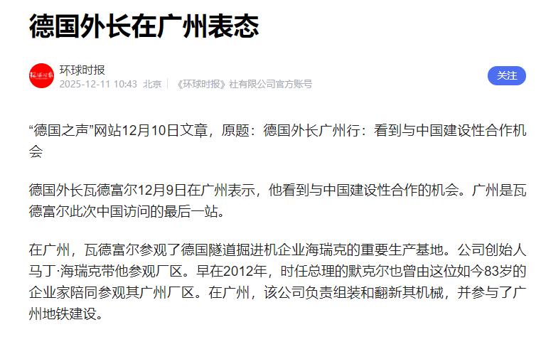 果不其然! 刚刚结束访华的德国外长说的话,给了欧洲响亮的一耳光! 德国外长瓦德富尔这趟中国行,可真是没白来,回去就给欧洲撂下了句大实话:想要赶上中国,就得赶紧把技术创新的油门踩到底! 这哪是啥客套话啊,分明是在中国亲眼见了真家伙之后,给欧洲泼的一盆醒脑凉水,比任何安慰剂都管用。 瓦德富尔在广州的行程里,肯定是实打实看到了中国的发展势头,不然也不会说出这么直白的狠话。 这些年中国的技术创新可不是吹出来的,高铁跑得又快又稳,从南到北朝发夕至,不仅咱们自己用着方便,还卖到了全世界。 无人机技术更是领跑全球,不管是农业植保、物流运输,还是应急救援,都派上了大用场。 还有新能源汽车,大街上跑的越来越多,不光颜值高、性能好,续航里程也越来越靠谱,现在在国际市场上都很受欢迎。 更别说量子计算、人工智能这些高科技领域,中国也是一步一个脚印往前赶,不断有新突破。 反观欧洲这些年,在技术创新上确实有点慢半拍了。 以前欧洲的制造业、汽车工业多厉害啊,提起德国汽车、法国高铁,那都是响当当的招牌。 可现在再看,在新能源汽车这个赛道上,中国已经跑在了前面,欧洲不少车企都被甩在了身后。 在数字经济、人工智能这些新兴领域,欧洲也没形成足够的竞争力,跟中国的差距是越来越明显。 不是说欧洲的技术不行,而是他们的创新速度跟不上中国的节奏,有时候还受限于内部协调、政策摇摆这些问题,错失了不少发展机会。 瓦德富尔心里跟明镜似的,这趟中国行让他真切感受到了什么叫 “中国速度” 和 “中国创新”。 他知道,如果欧洲还抱着老观念,慢悠悠地搞发展,那跟中国的差距只会越来越大,到时候想追都追不上了。 所以他才急着喊出要火速提升技术创新速度,这既是给欧洲提个醒,也是一种紧迫感的体现。 要知道,现在的国际竞争,说到底就是技术创新的竞争。谁能在技术上抢占先机,谁就能在全球产业链、供应链中占据有利位置。 中国这些年一直把科技创新摆在重要位置,投入了大量的人力、物力、财力,才有了今天的成果。 从国家层面的战略规划,到企业层面的积极研发,再到科研人员的刻苦攻关,形成了一股强大的合力,推动着中国技术不断向前发展。 欧洲其实也有不少优势,比如深厚的工业基础、优秀的科研人才、完善的科研体系。 但问题在于,他们的创新活力没有被充分激发出来,有时候还会受到各种因素的束缚。 瓦德富尔的这句话,就是希望欧洲能打破这些束缚,拿出实打实的行动,加快创新步伐。 毕竟,现在的市场不等人,技术发展也不等人,慢一步就可能步步慢。 瓦德富尔带回去的这记 “清醒的耳光”,确实太有必要了。欧洲不能再沉浸在过去的辉煌里,也不能再对中国的发展视而不见。 只有正视差距,拿出紧迫感,把技术创新当成头等大事来抓,欧洲才有机会赶上中国的发展步伐。 而中国呢,也不会因为别人的追赶就放慢脚步,只会继续按照自己的规划,一步一个脚印地推进科技创新,在国际竞争中保持领先优势。 说到底,瓦德富尔的这句话,既是对欧洲的警示,也从侧面印证了中国科技创新的实力和成就。 这也让我们更加坚信,只要坚持走自主创新的道路,中国一定能在更多技术领域实现突破,为世界科技发展贡献更多中国智慧和中国力量。