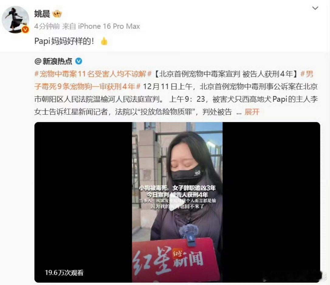 papi妈咪够勇敢,好样的👍小papi在汪汪星也会为妈咪骄傲的吧姚晨点赞papi妈妈好样的男子毒死9条宠物狗一审宣判