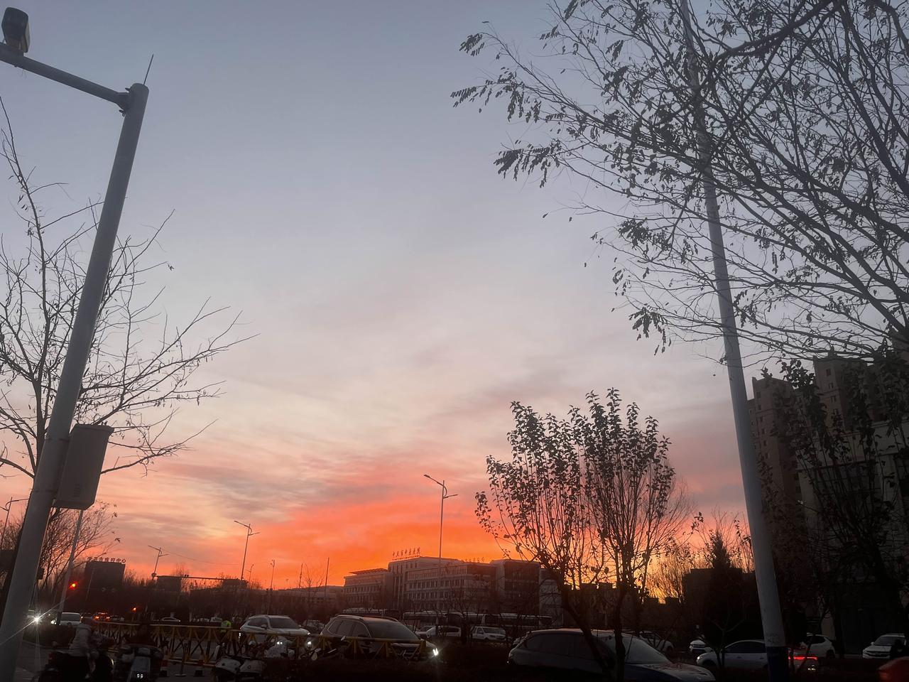 邂逅冬日黄昏的浪漫,天边烧起一片橘红 下班路上一抬头,瞬间被眼前的黄昏惊艳到了。 冬日的城市街头,枯枝疏朗地勾勒着天际线,而远处的天空却像被点燃一般,从浅粉到橘红,再到浓烈的焰红,层层晕染开,把灰蒙蒙的冬日傍晚揉成了一幅温柔的油画。 寒风里的树枝褪去了繁叶,反倒成了最好的画框,将这片绚烂的晚霞框在其中。 街边的路灯还未亮起,楼宇的轮廓在霞光里成了深浅不一的剪影,少了平日里的喧嚣,多了几分静谧的温柔。 总觉得冬日的浪漫藏得格外深,可能是街角一杯热饮的暖,也可能是这样猝不及防撞进眼里的晚霞。 生活的美好往往就在这些不期而遇的瞬间,停下脚步抬头看的那一刻,所有的疲惫好像都被这片橘红融化了。 你有没有在冬日里遇到过这样治愈的黄昏?不妨也抬头看看,说不定美好就在头顶的天空里。