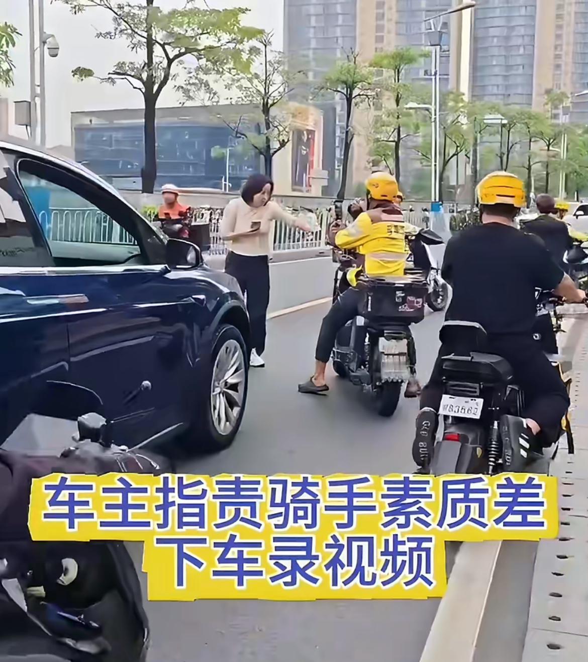 开特斯拉的小仙女太嚣张了,把人家外卖小哥的外卖全扔了,起因是小仙女认为外卖小哥骑车素质差,可能是碍她事了。可是这也不是你扔人家外卖的理由啊,这等同于砸人家饭碗。这个外卖小哥脾气挺好,没有动粗,小仙女你就偷着乐吧。别欺人太甚,万一遇到一个冲动的兄弟,心里扛着事的,有可能你就交代在这里了,幸福者退让原则不懂吗?送外卖女生 特斯拉解雇事件