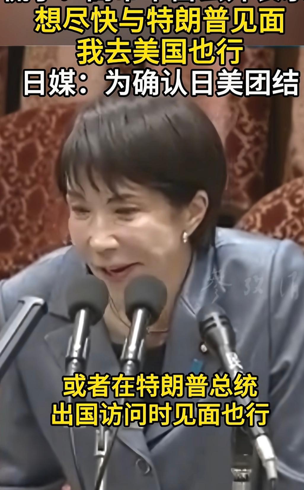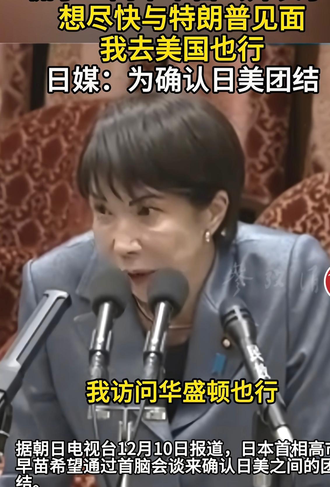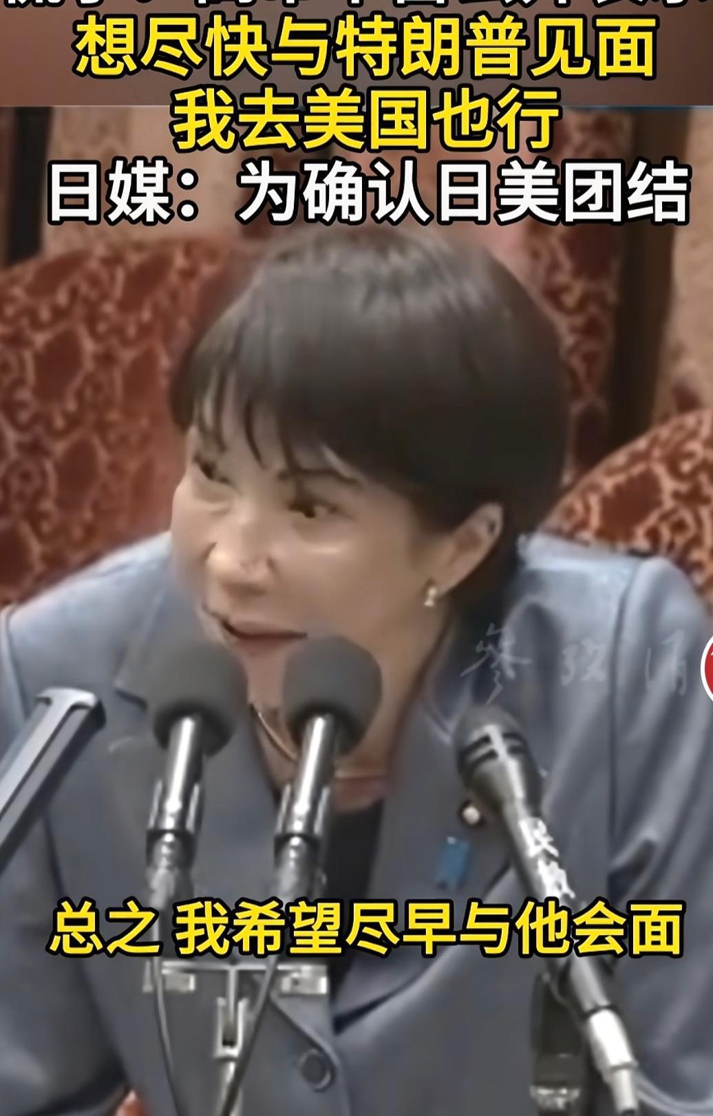 高市早苗想特朗普都快疯了 高市早苗这几天无精打采,萎靡不振,好像放了气的皮球,她想尽快见到她的上帝,她的救世主特朗普,以赐给她灵丹妙药。高市早苗表示,我想“尽快与美国总统唐纳德.特朗普举行会晤”越快越好,只要能实现我们之间的会晤“我可以前往华盛顿,如果特朗普总统出访海外,我也希望能尽快促成会面。” 其实高市早苗应该明白,如果自己不尽早收回错误言论,即使见了特朗普也不会赐予你什么灵丹妙药。