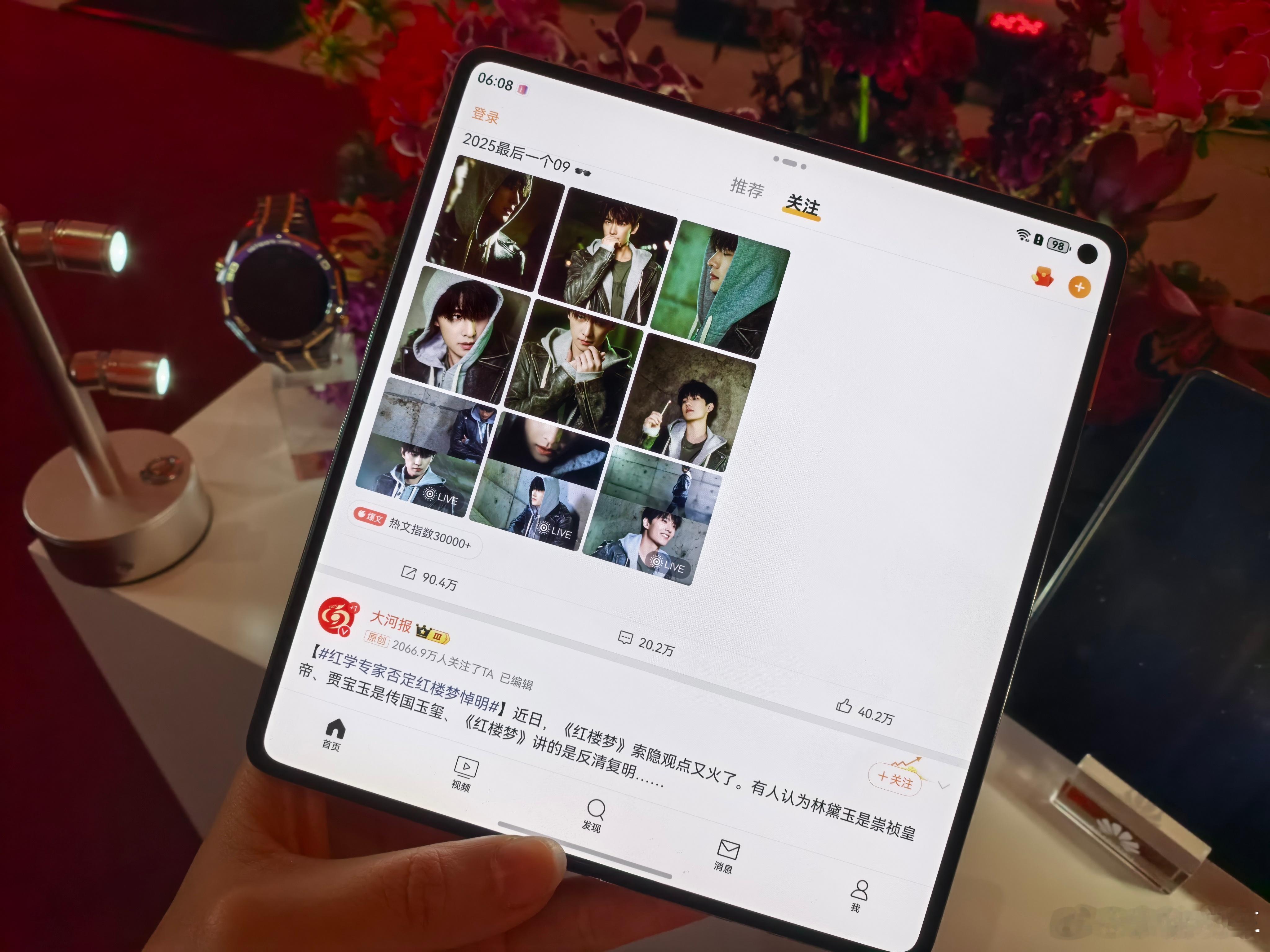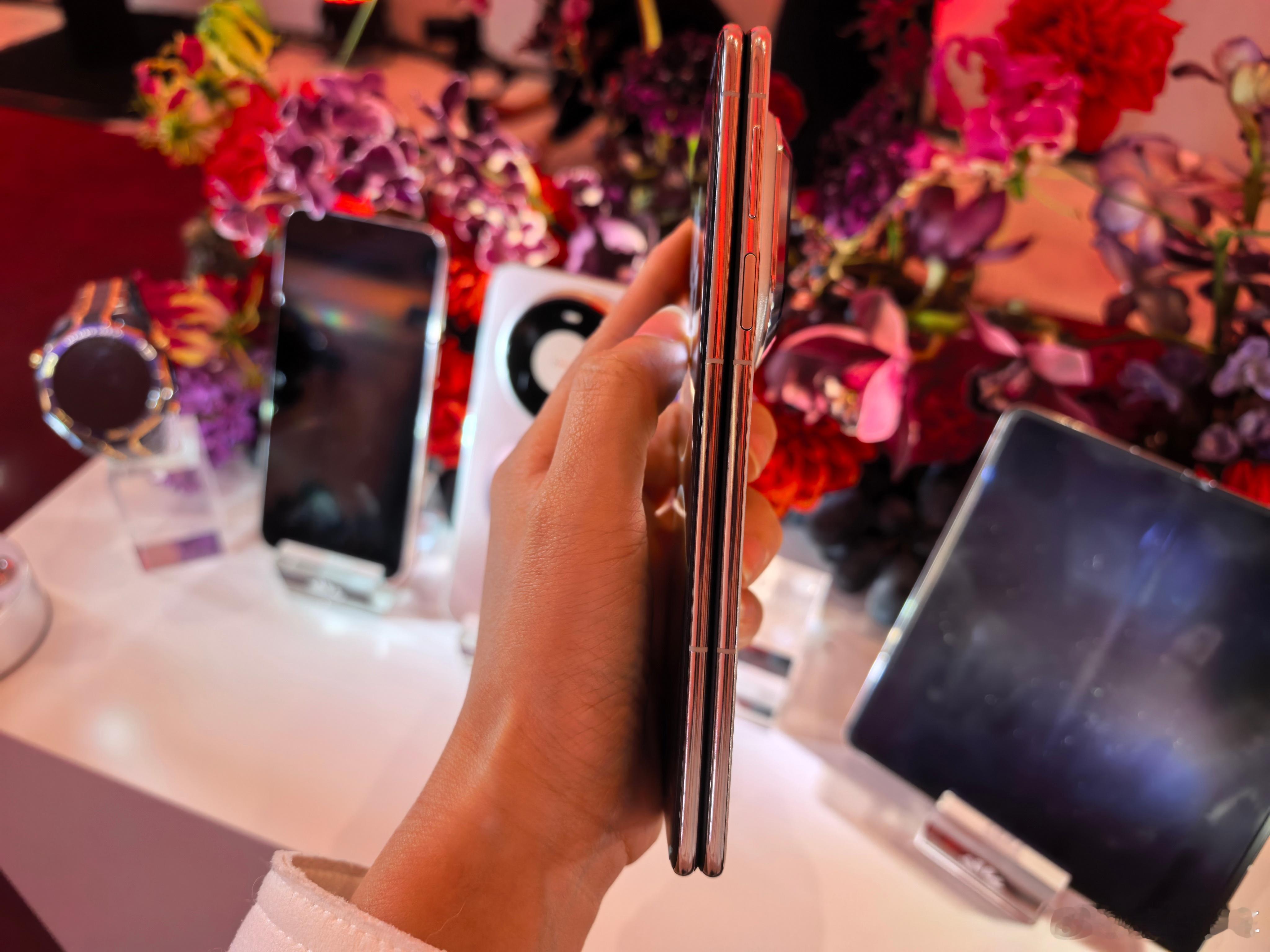 到时尚芭莎艺术大赏这次华为MateX7 也在现场随手抓拍了几张颜值高手感非常好关键两个屏幕都很薄小姐姐一只手也可以掌握