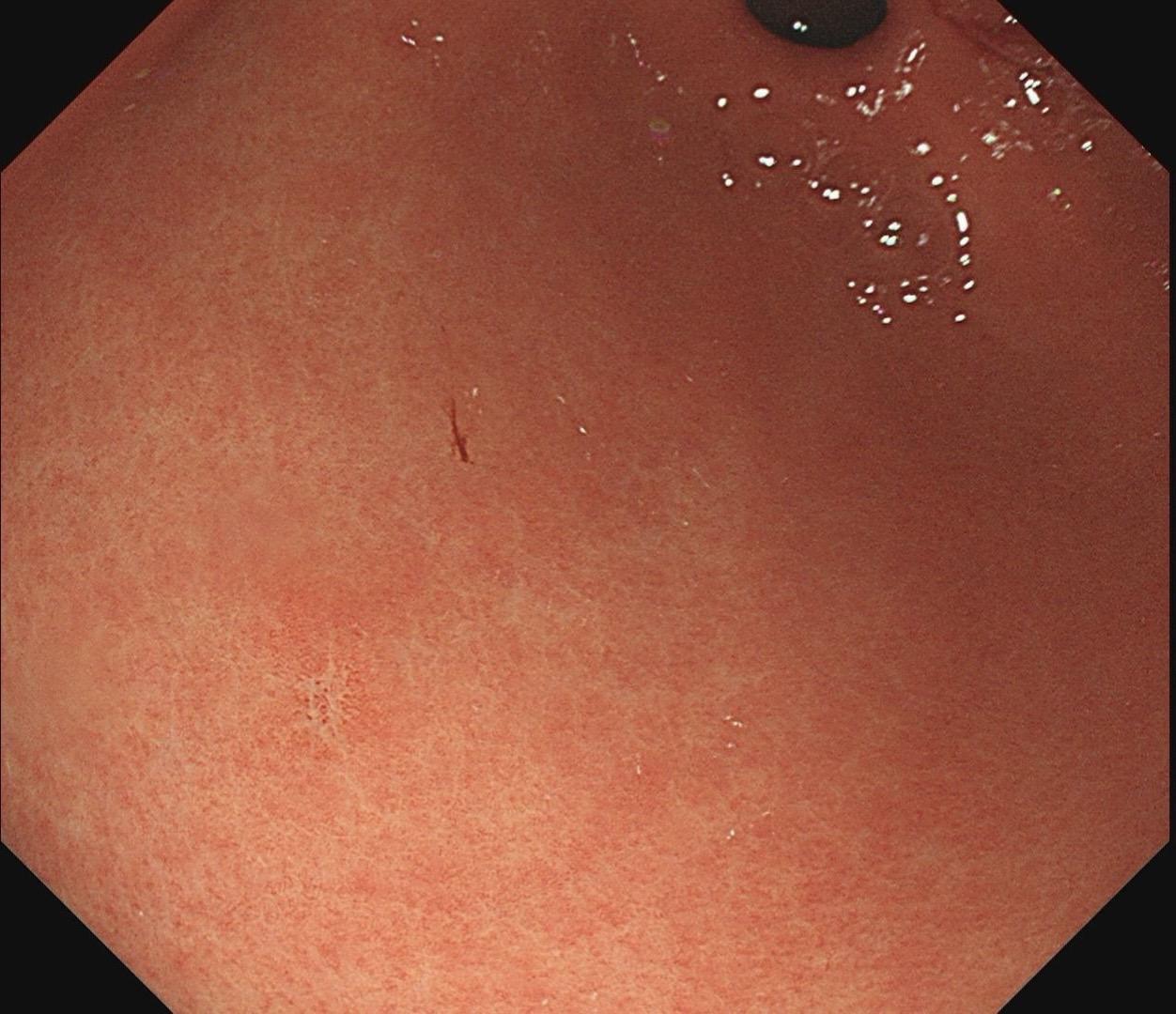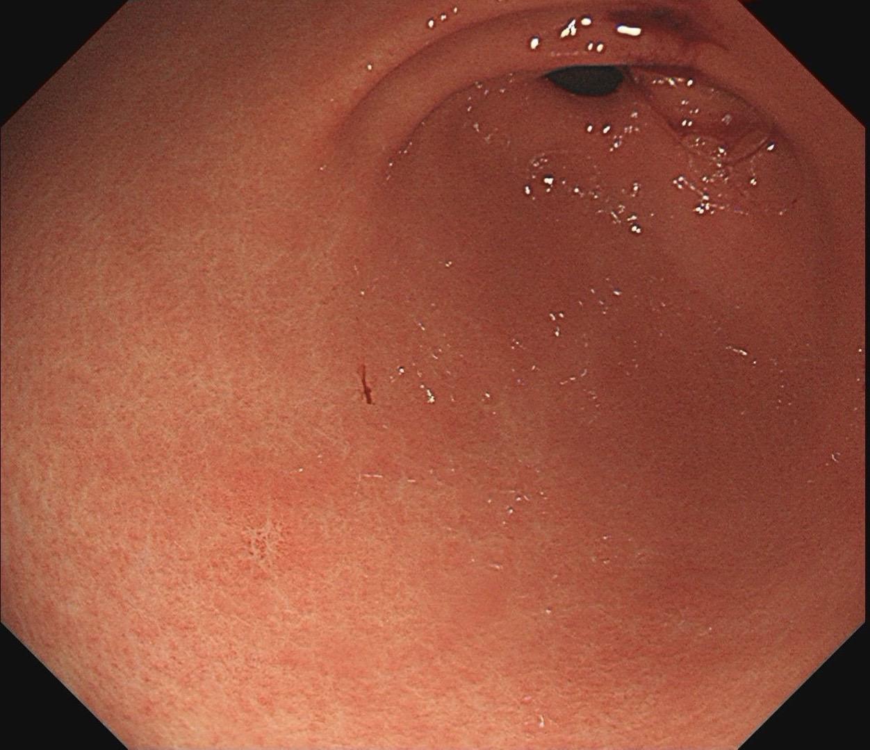 男,40岁,胃双发褪色调病变。慢性胃炎复查,3年前胃镜未见异常,Hp阳...