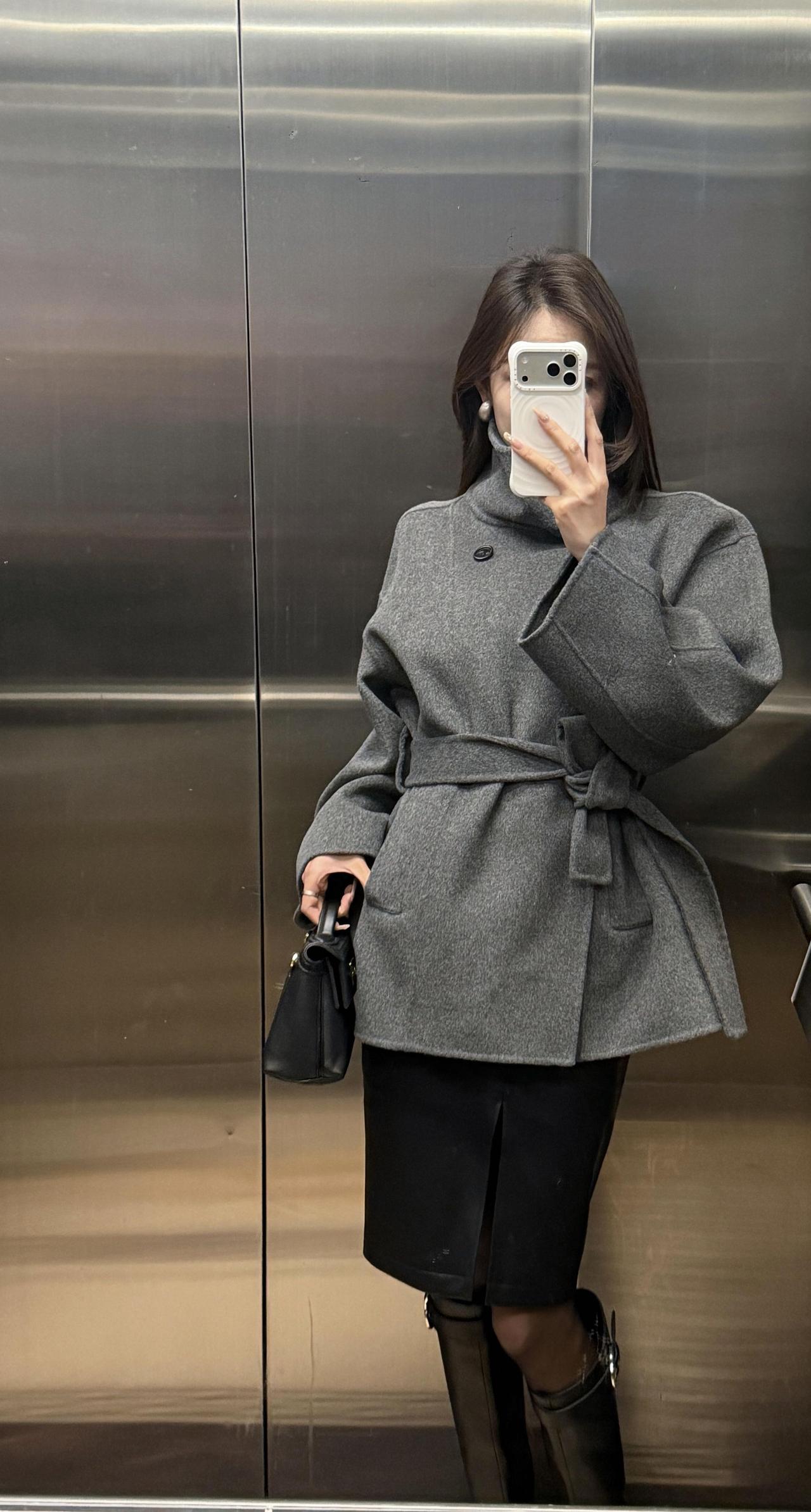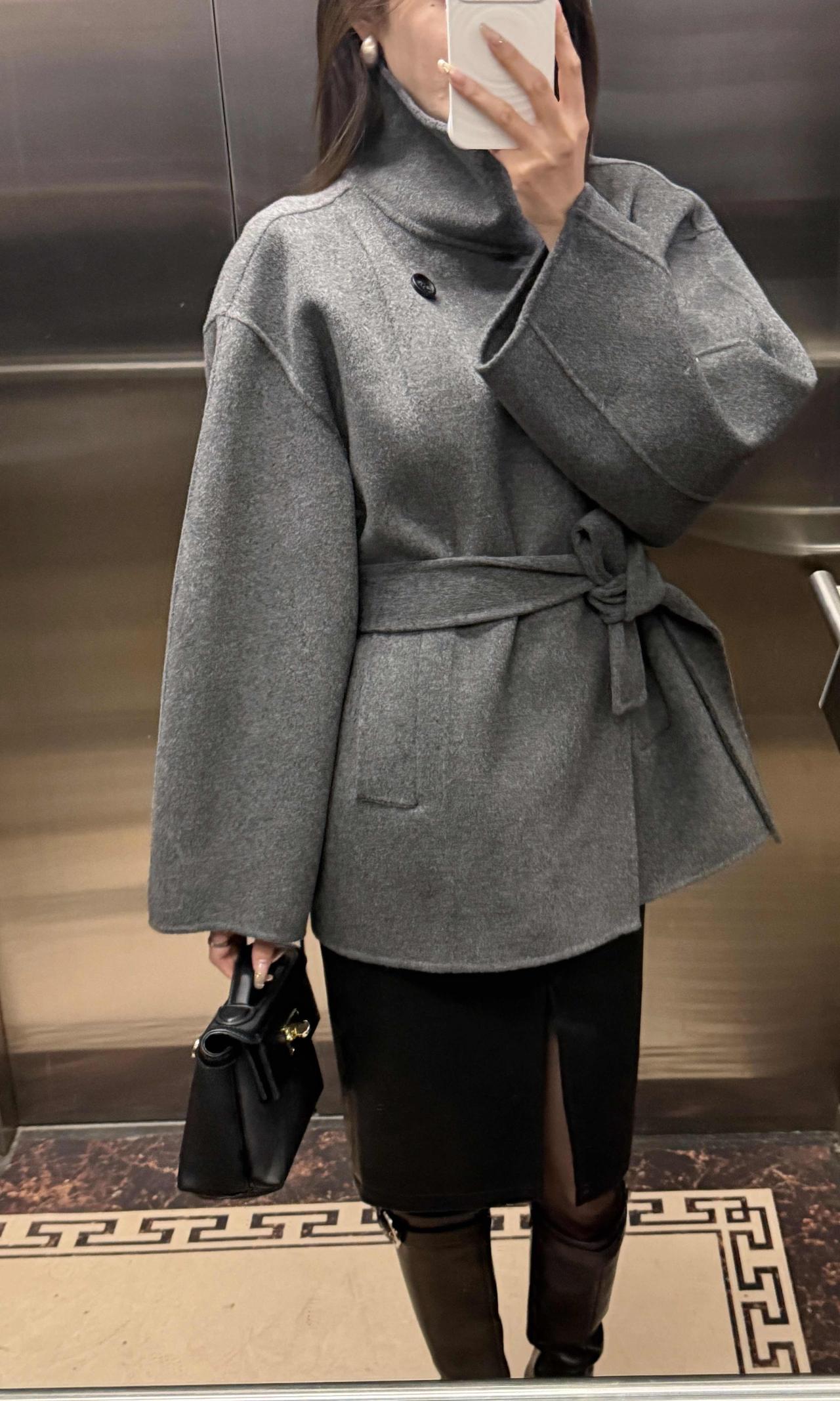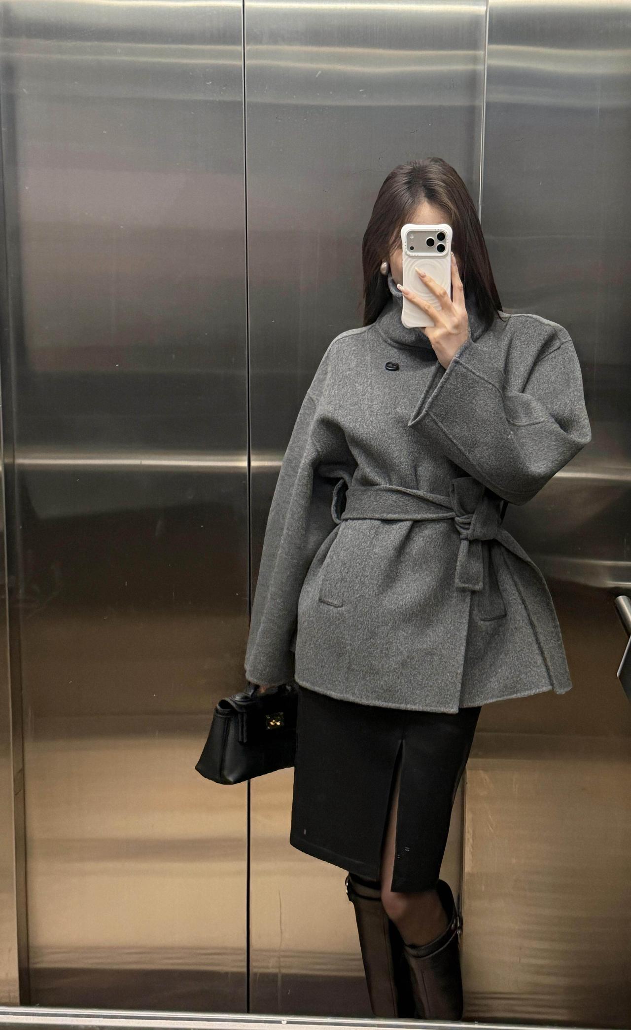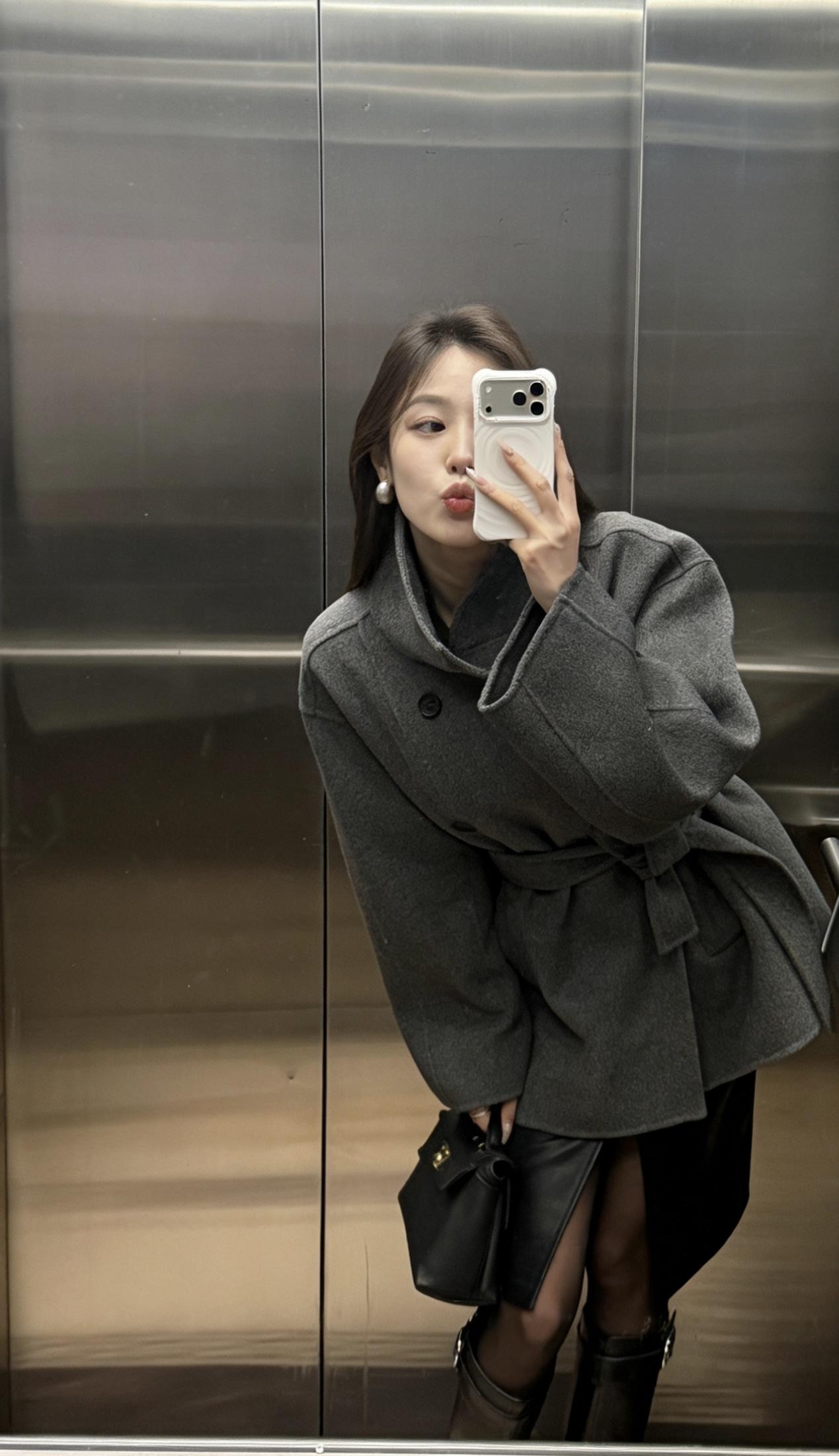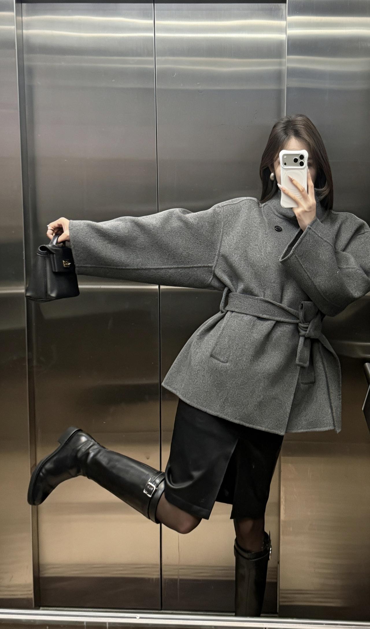 今日穿搭推荐:灰色收腰毛呢短大衣为主打,搭配黑色开叉皮裙、黑丝与黑色长筒靴,手持黑色迷你手拎包,整体走轻熟风+都市通勤风路线,兼具质感与女性化的精致感: 灰色毛呢大衣:短款收腰设计勾勒腰线,毛呢材质自带高级感,灰色系低调又百搭,是秋冬氛围感的核心单品; 黑色下装组合:开叉皮裙增加了设计感与小性感,黑丝+长靴的搭配中和了皮裙的硬朗,同时拉长腿部线条; 配饰:黑色迷你手拎包小巧精致,与整体黑灰配色呼应,提升了造型的精致度。 适合的场合 日常通勤、逛街、下午茶、轻商务场合,简约而不简单。