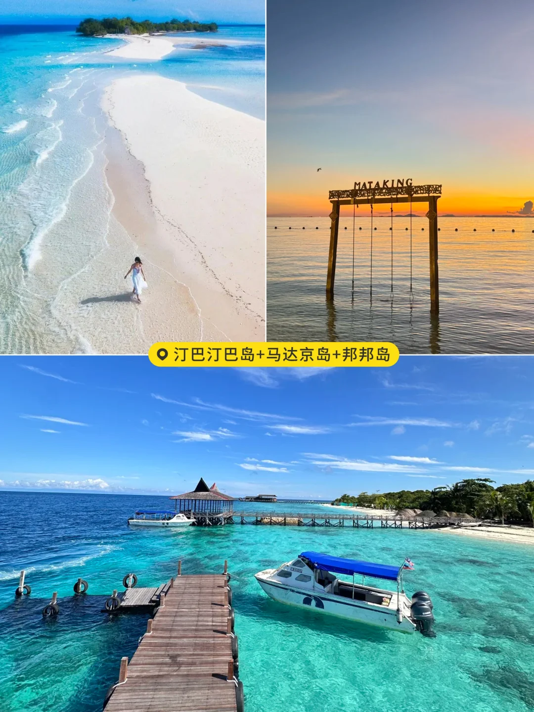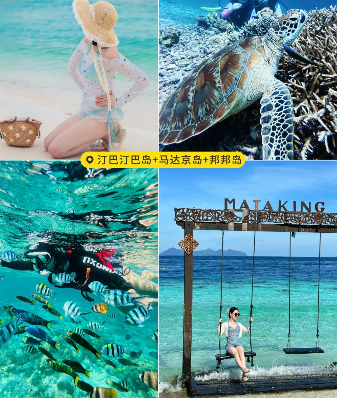 仙本那浮潜也太治愈了吧~ 第一站汀巴汀巴岛,海水清透得像玻璃,浮潜时和热带鱼🐠群贴贴,午后奔赴马达京岛,踩上超火的拖尾沙滩🏖️,最后去邦邦岛,找片安静海域放空,看珊瑚摇曳、海龟🐢悠游, 沉浸式享受海岛慢时光!