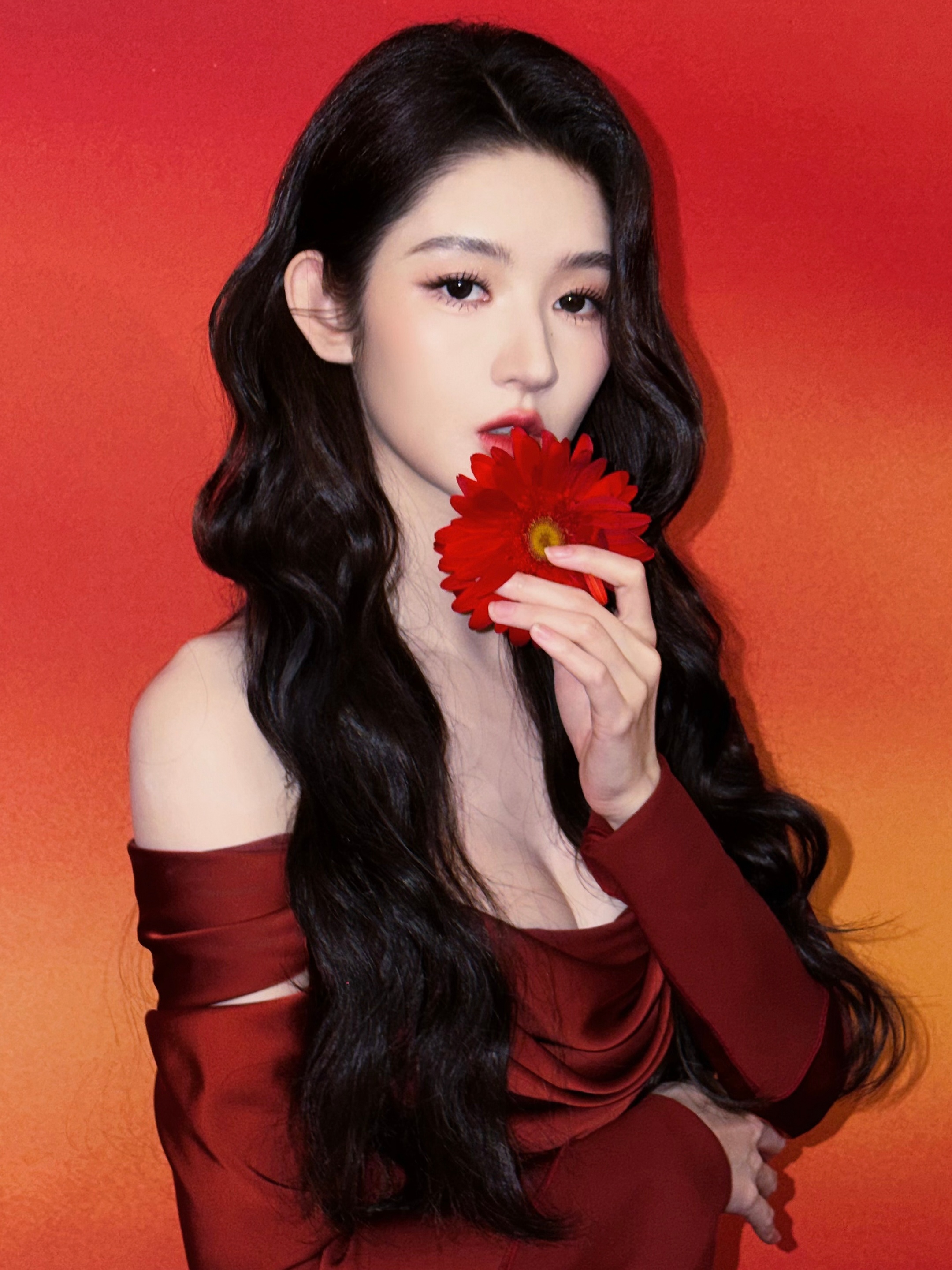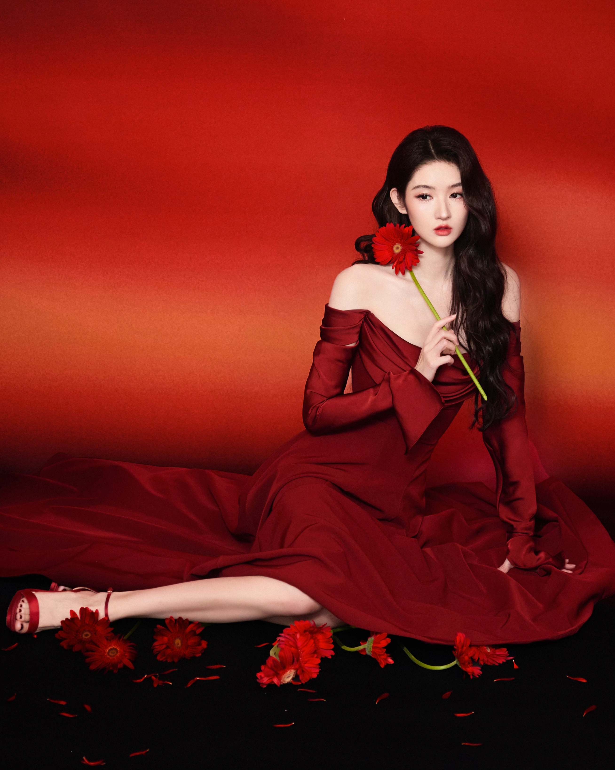 白鹿花朵红裙红裙好美的白梦妍,期待演员白鹿2025星光大赏🌹