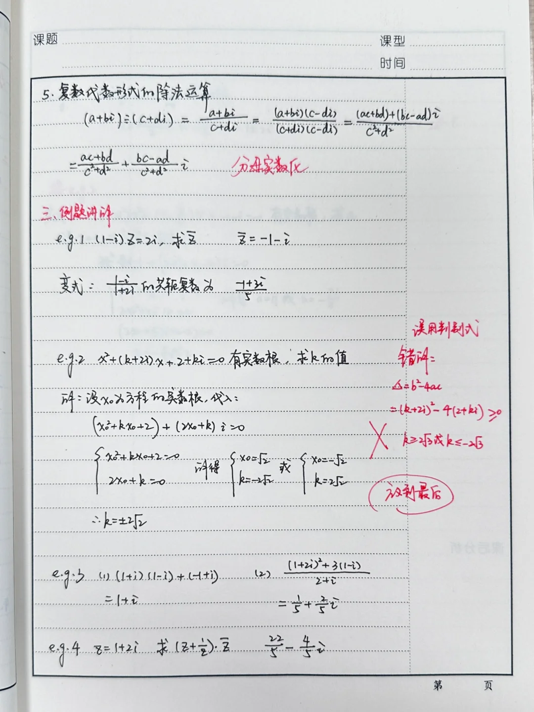 今日上课内容,复数的乘、除运算~板书稍后更新! 明天还是打算讲讲 7.3 复数的三角表示的相关知识~