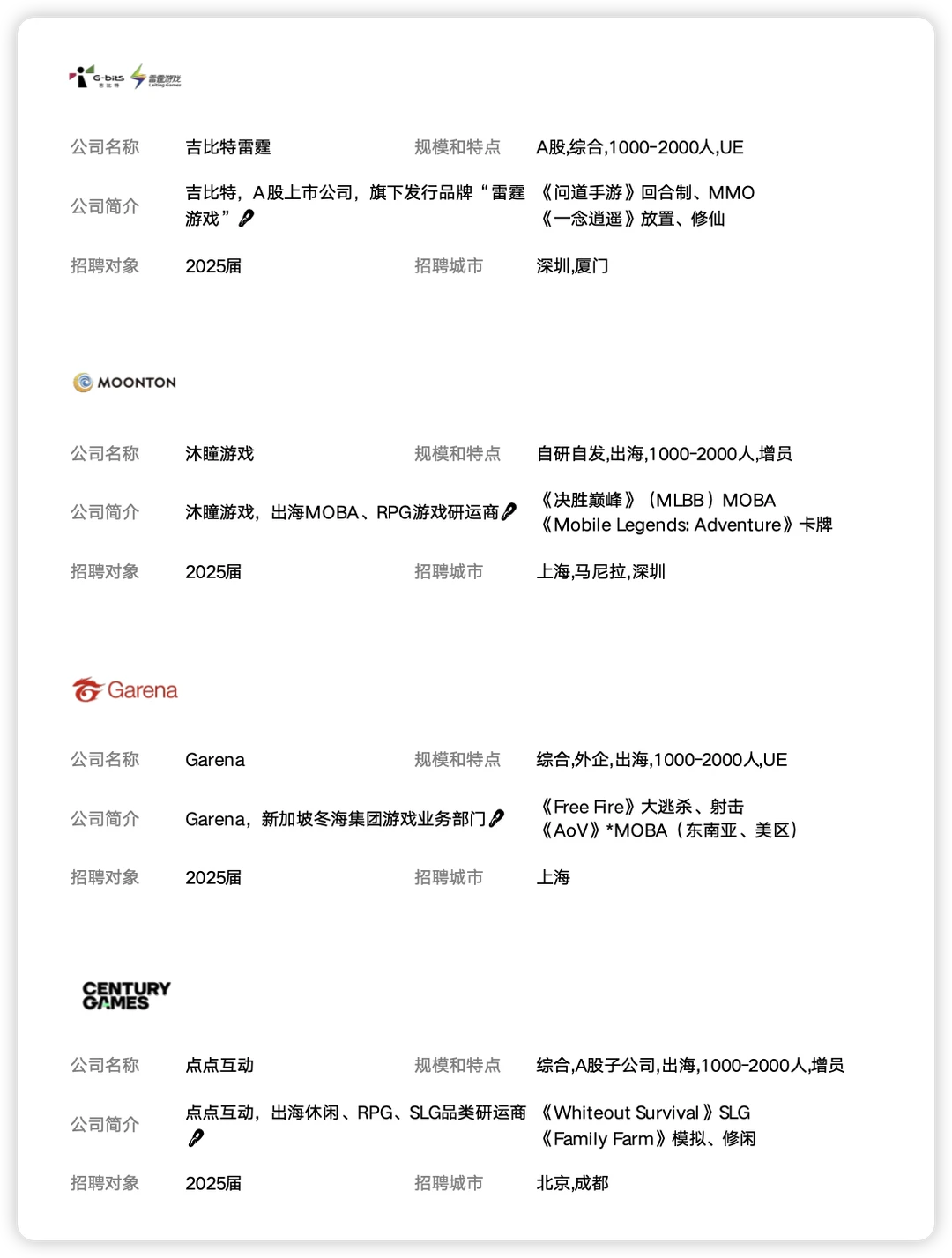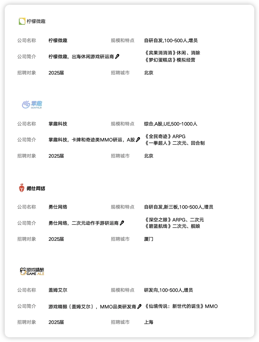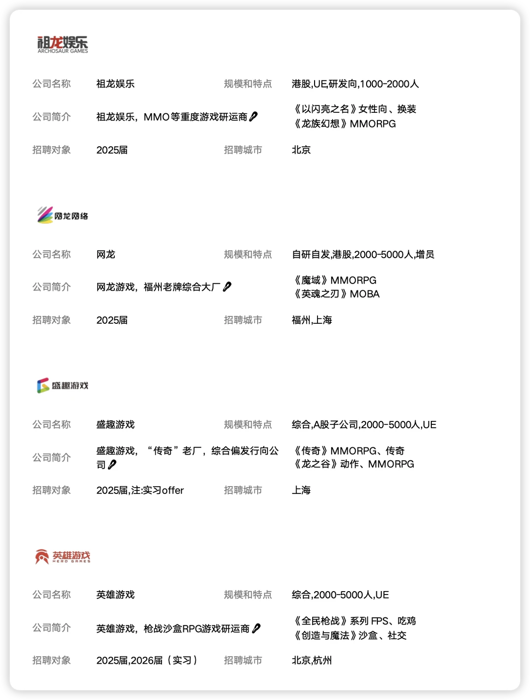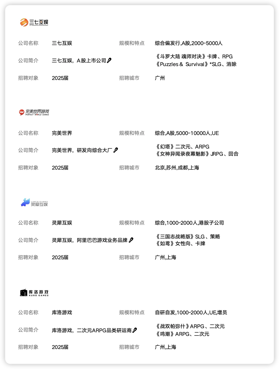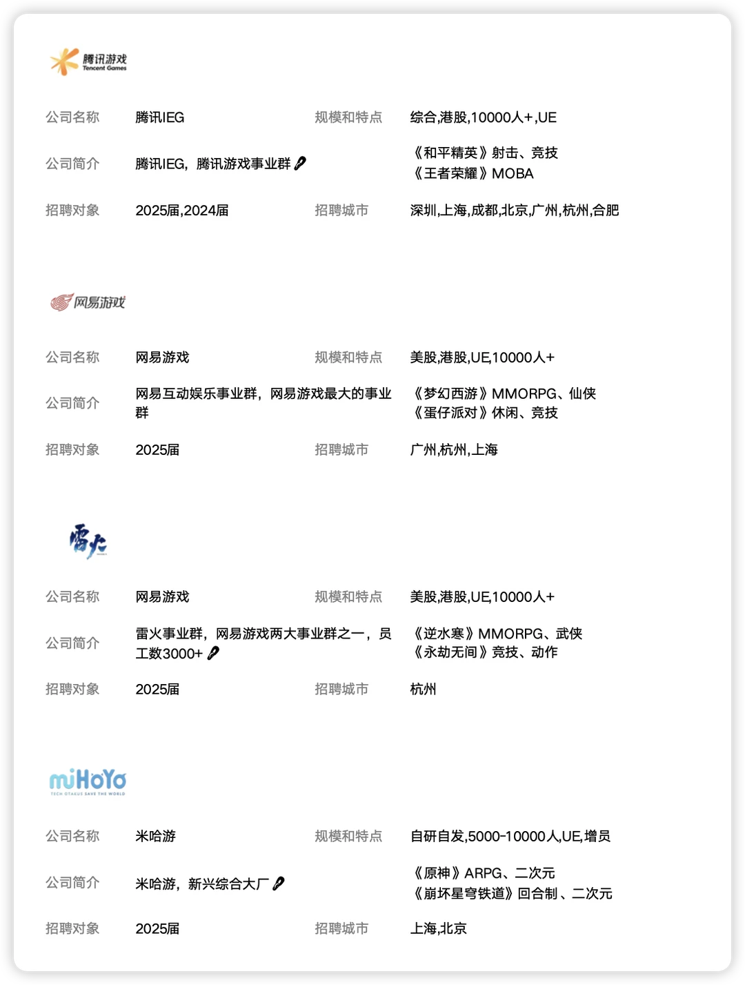 已开启秋招的游戏公司里,游戏产品或者发行能力还不错的公司(老产品或者在研产品)。