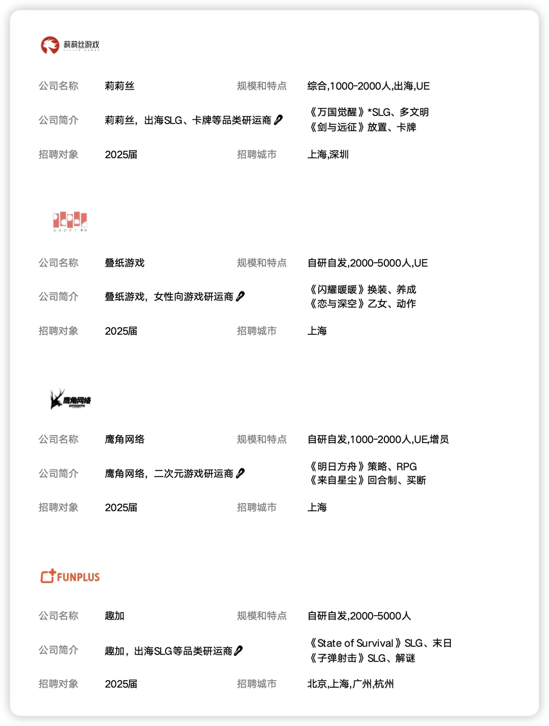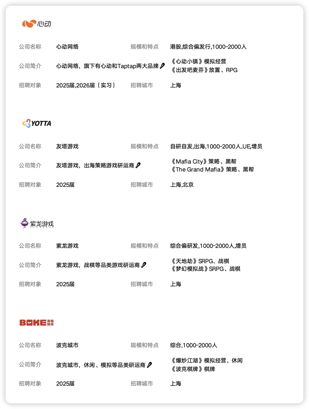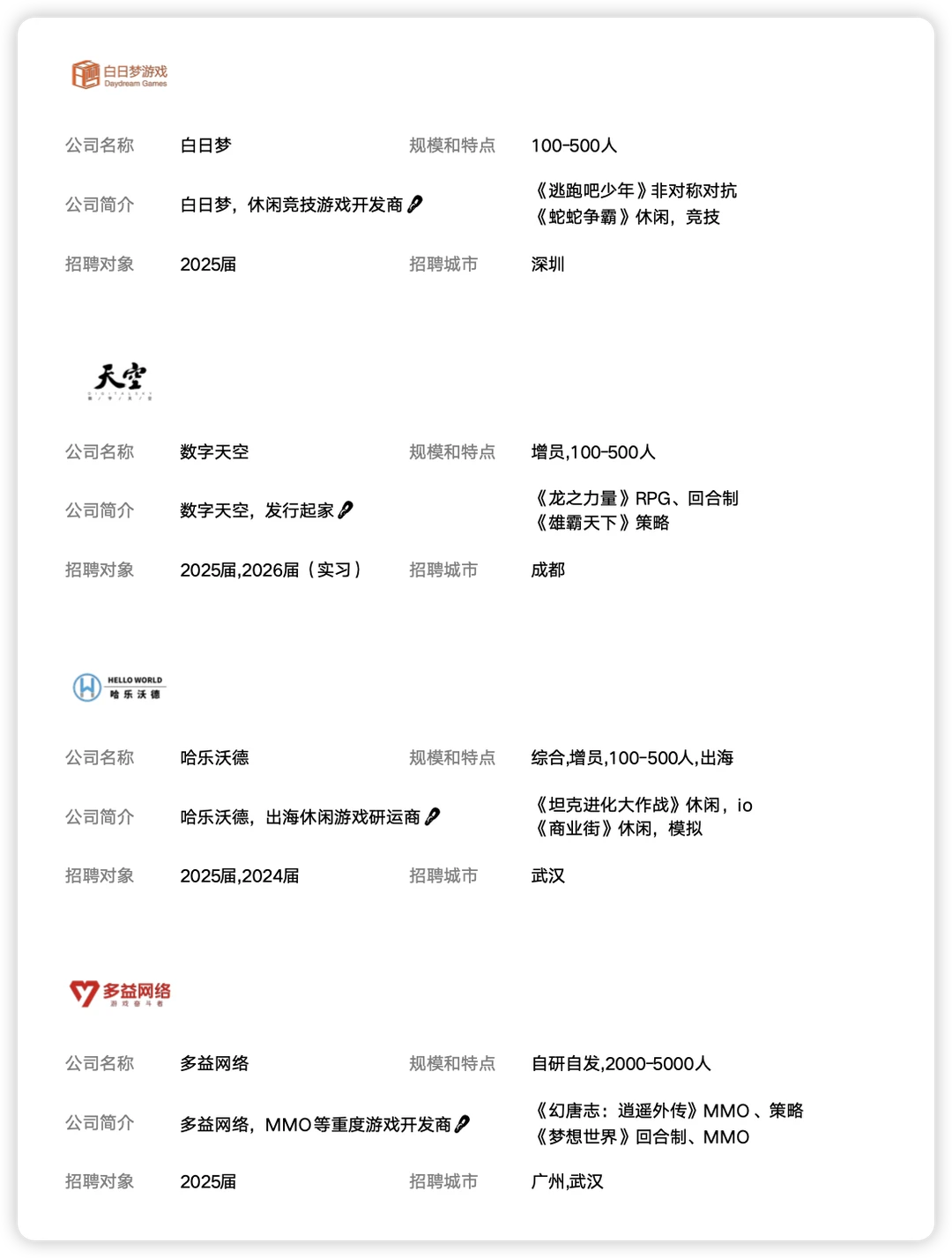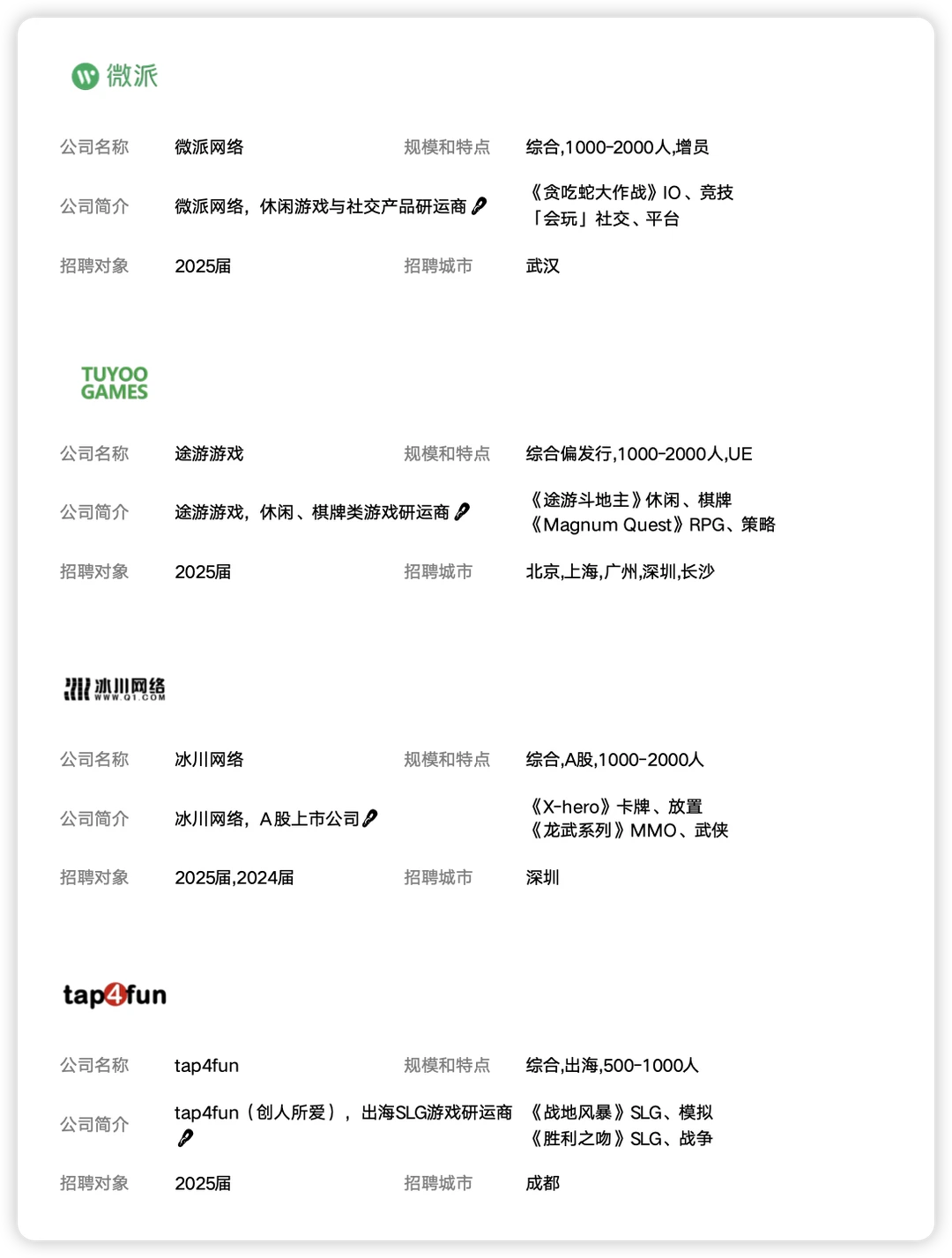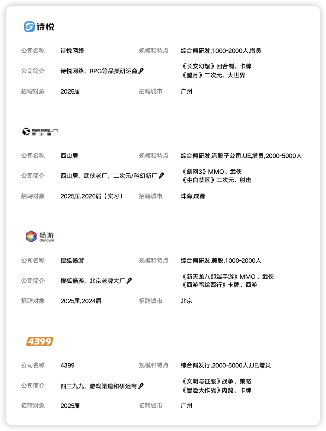 已开启秋招的游戏公司里,游戏产品或者发行能力还不错的公司(老产品或者在研产品)。